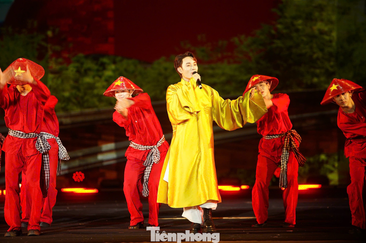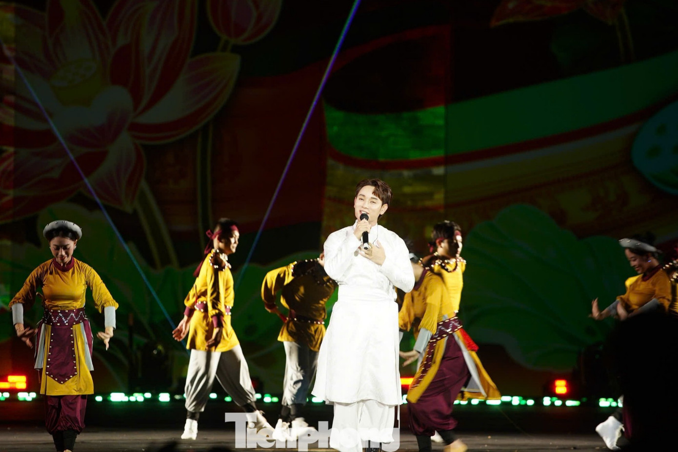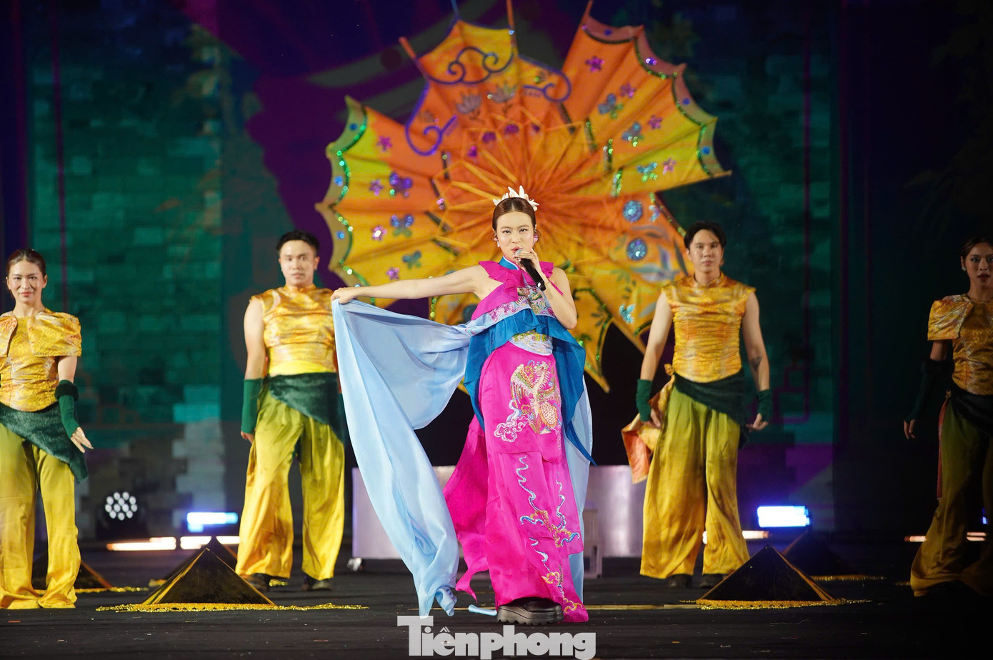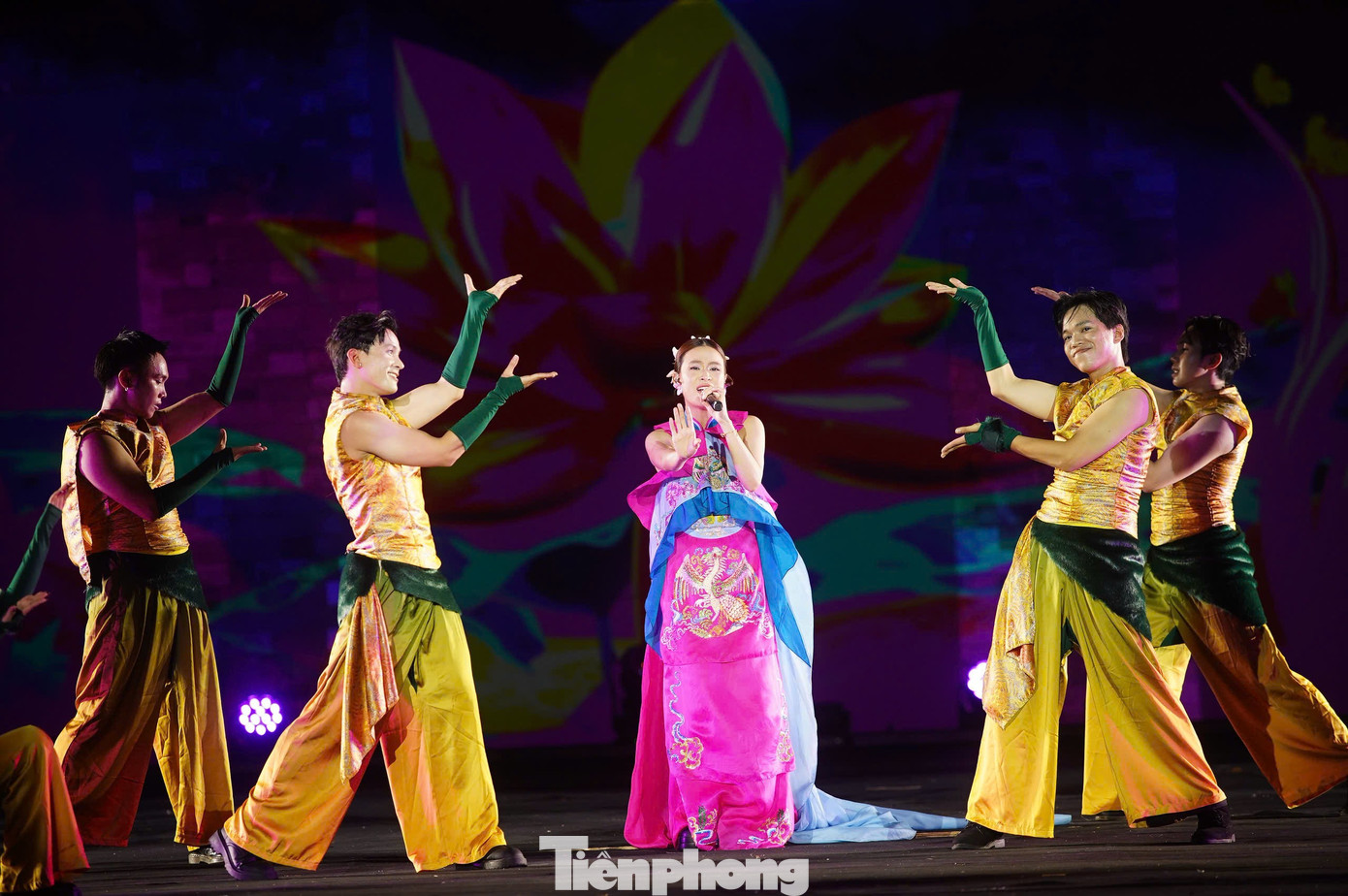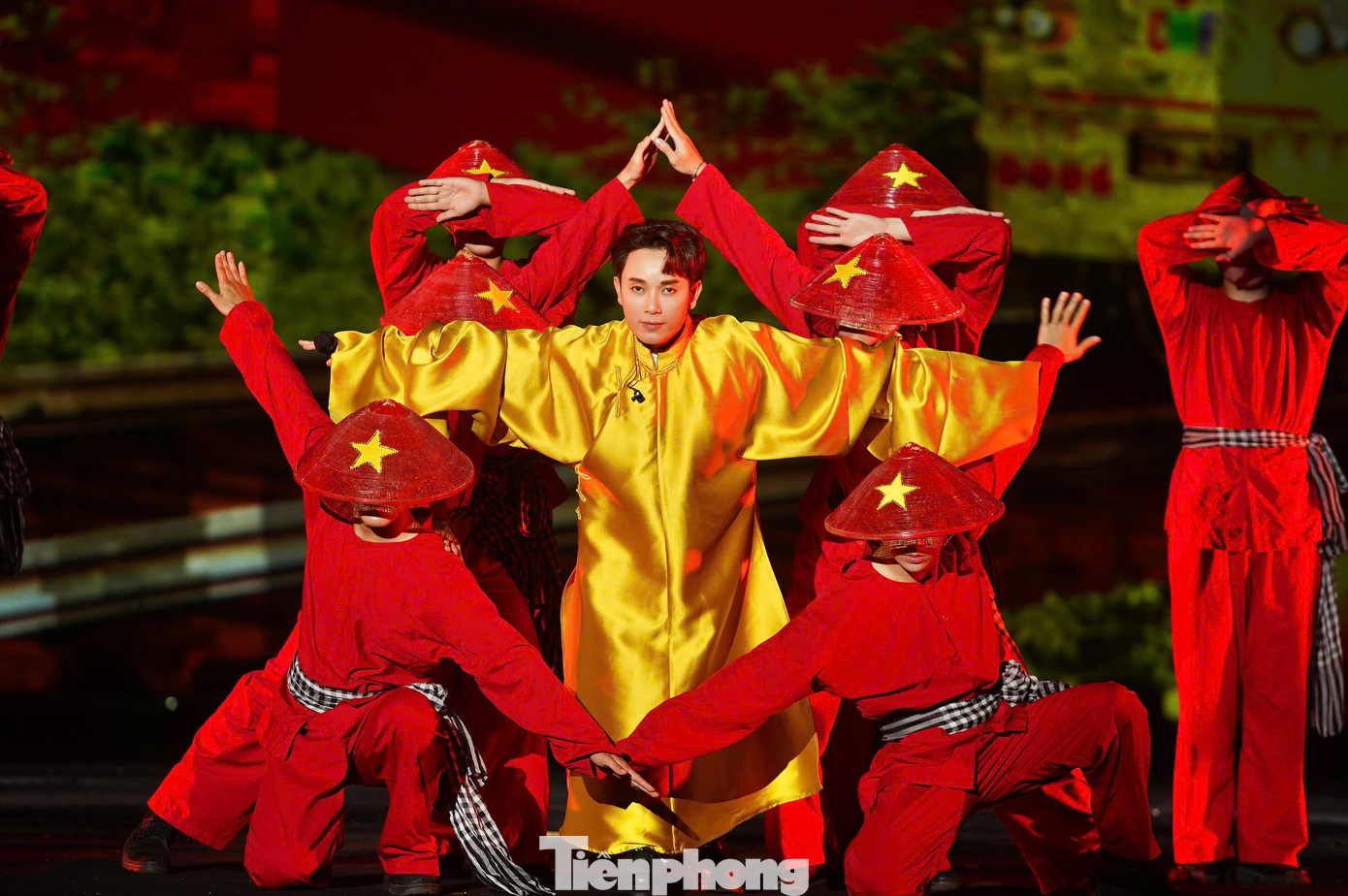 Trúc Nhân trình diễn Made in Vietnam cùng vũ đoàn với hiệu ứng ánh sáng hoành tráng.