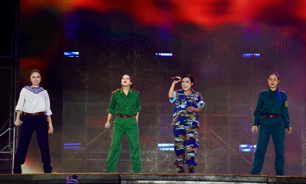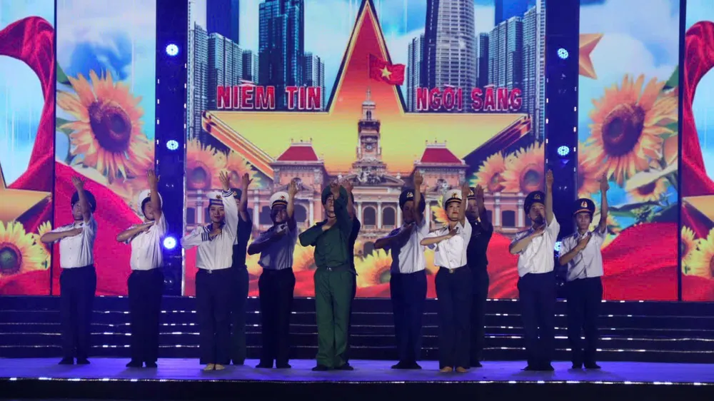 Ca khúc Thành phố Hồ Chí Minh niềm tin ngời sáng do các nghệ sĩ Khánh Ngọc, Đào Mác, Phạm Trang, Duyên Huyền... thể hiện. Ảnh: THUẬN VĂN