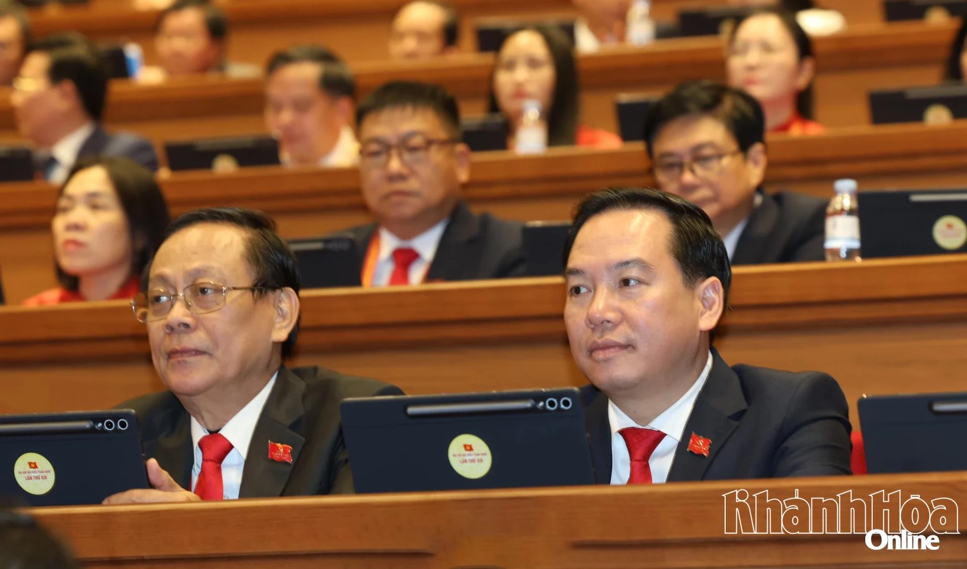 Đoàn đại biểu Đảng bộ tỉnh Khánh Hòa gồm 32 đồng chí, do đồng chí Nghiêm Xuân Thành - Ủy viên Trung ương Đảng, Bí thư Tỉnh ủy làm trưởng đoàn, đại diện cho ý chí, trí tuệ, nguyện vọng của Đảng bộ, chính quyền và Nhân dân trong tỉnh.