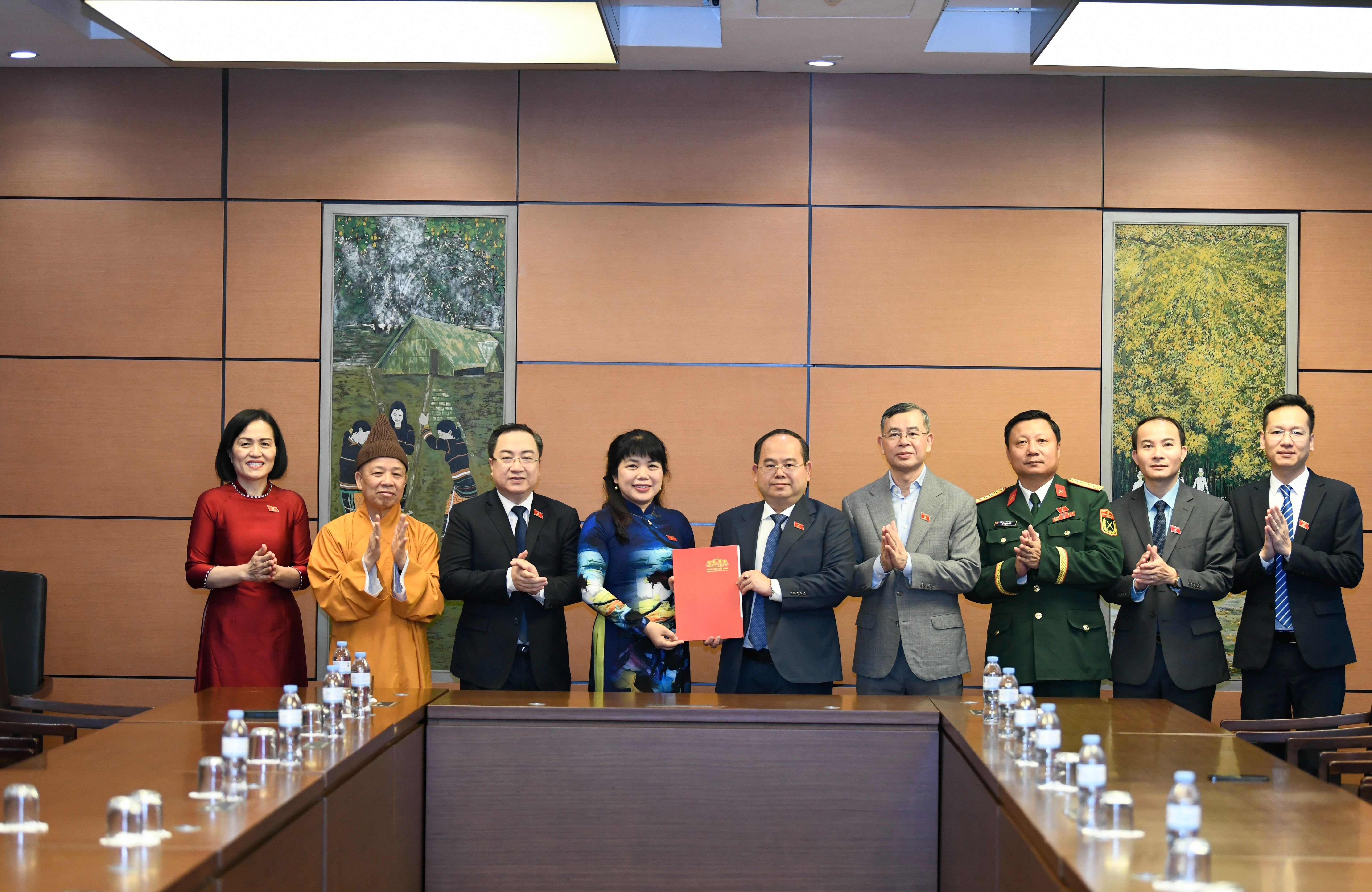 Ủy viên Trung ương Đảng, Bí thư Tỉnh ủy, Trưởng Đoàn ĐBQH tỉnh Quản Minh Cường thừa ủy quyền của Ủy ban Thường vụ Quốc hội trao trao Nghị quyết về việc phê chuẩn kết quả bầu Tỉnh ủy viên, ĐBQH khóa XVI Nguyễn Thị Thu Hà giữ chức vụ Phó trưởng Đoàn ĐBQH chuyên trách khóa XVI tỉnh Quảng Ninh