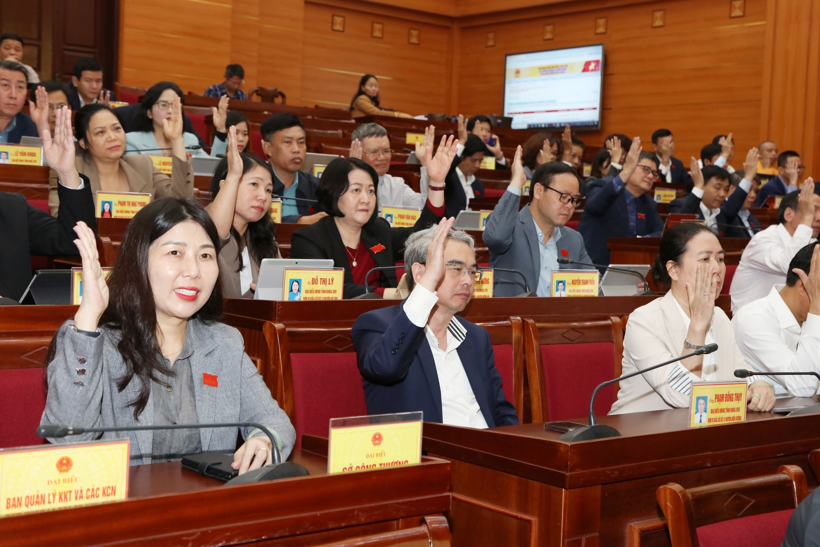 Đại biểu biểu quyết thông qua các nghị quyết tại Kỳ họp thứ 35, HĐND tỉnh Khóa XVII. Ảnh: Đỗ Anh