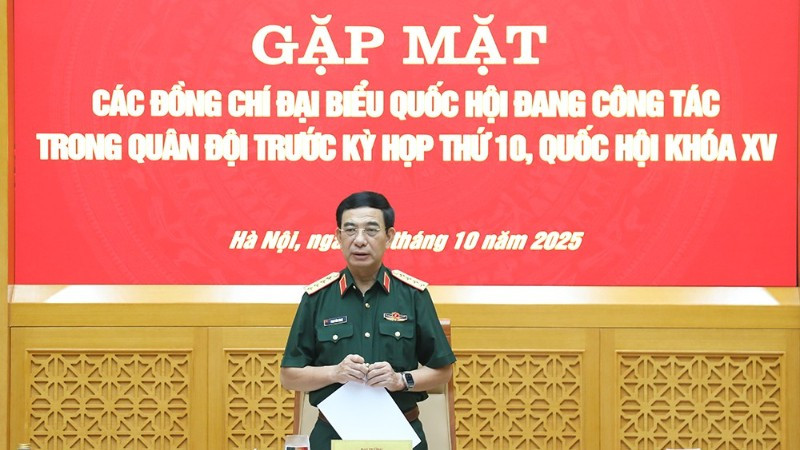 Đại tướng Phan Văn Giang chủ trì buổi gặp mặt các đại biểu Quốc hội đang công tác trong Quân đội trước kỳ họp thứ 10, Quốc hội khóa XV. (Ảnh: Cổng thông tin điện tử Bộ Quốc phòng)