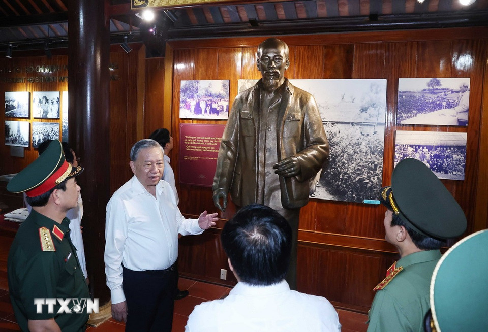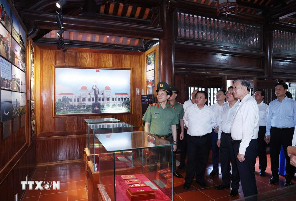 Tổng Bí thư Tô Lâm thăm Nhà trưng bày các hình ảnh, hiện vật về Chủ tịch Hồ Chí Minh tại Khu Di tích Quốc gia đặc biệt Kim Liên. (Ảnh: Thống Nhất/TTXVN)