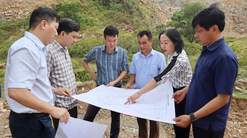 Trưởng Ban Kinh tế – Ngân sách HĐND tỉnh Nguyễn Thị Thúy Nga dẫn đầu Tổ tham mưu, giúp việc kiểm tra hồ sơ, khảo sát thực tế tại mỏ đá xã Cẩm Thịnh