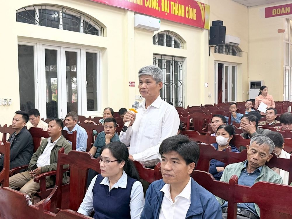 Cử tri xã Phúc Hòa kiến nghị với Tổ đại biểu HĐND tỉnh Bắc Ninh trong buổi tiếp xúc với cử tri trước Kỳ họp thứ 7, HĐND tỉnh Khóa XIX. Ảnh: Vân Anh