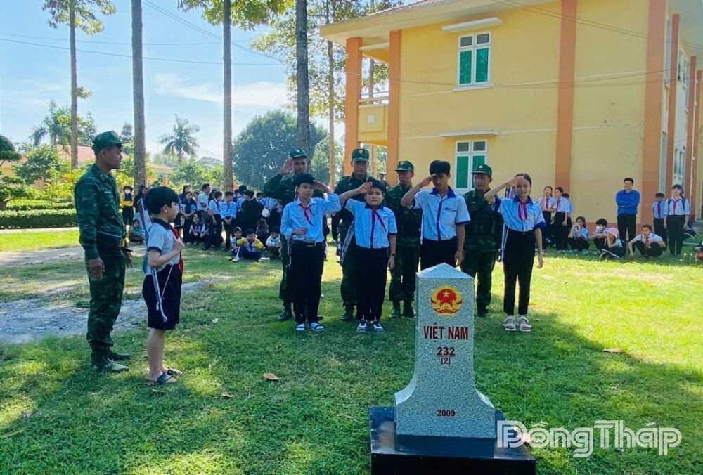 Dưới chân cột mốc 232 (2) thuộc địa bàn quản lý của Đồn Biên phòng Cửa khẩu Quốc tế (CKQT) Dinh Bà (xã Tân Hộ Cơ, tỉnh Đồng Tháp), bầu không khí trang nghiêm nhưng cũng đầy hào hứng, hàng chục học sinh Trường Tiểu học Dinh Bà, mang khăn quàng đỏ, mắt xoe tròn chăm chú lắng nghe Thiếu tá Nguyễn Văn Sáu, Chính trị viên phó Đồn Biên phòng CKQT Dinh Bà giới thiệu về lịch sử hình thành và ý nghĩa của cột mốc biên giới.