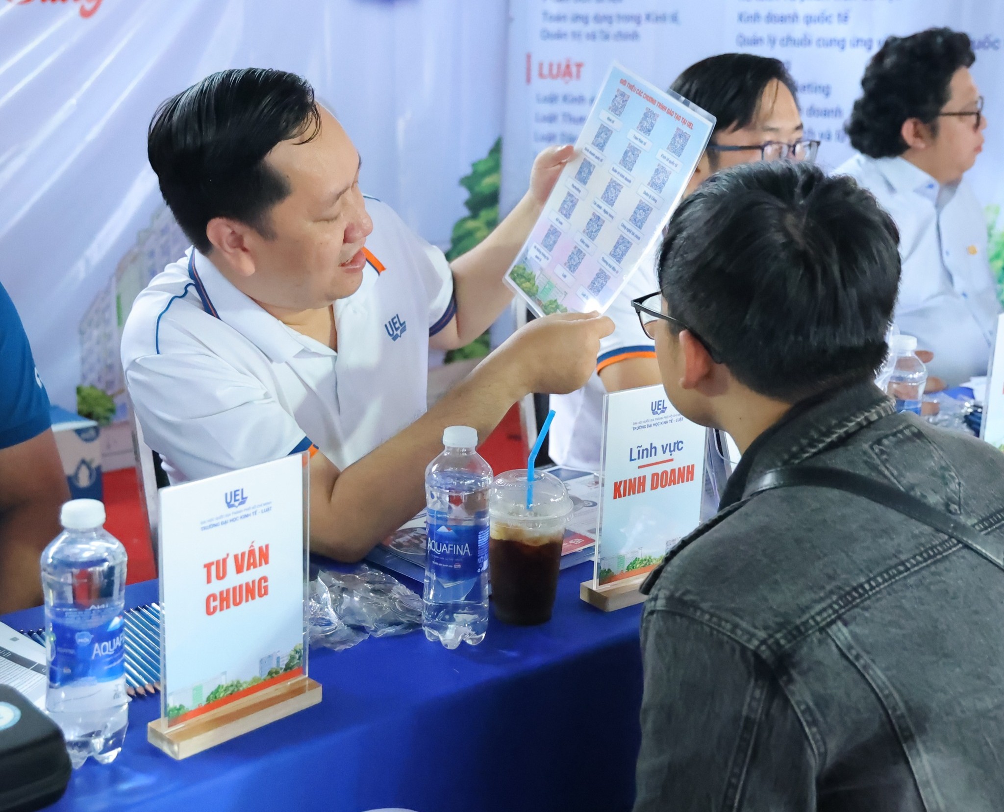 Đại diện cán bộ Trường ĐH Kinh tế - Luật (ĐH Quốc gia TP.HCM) tư vấn chọn ngành học cho thí sinh năm 2026. Ảnh: UEL