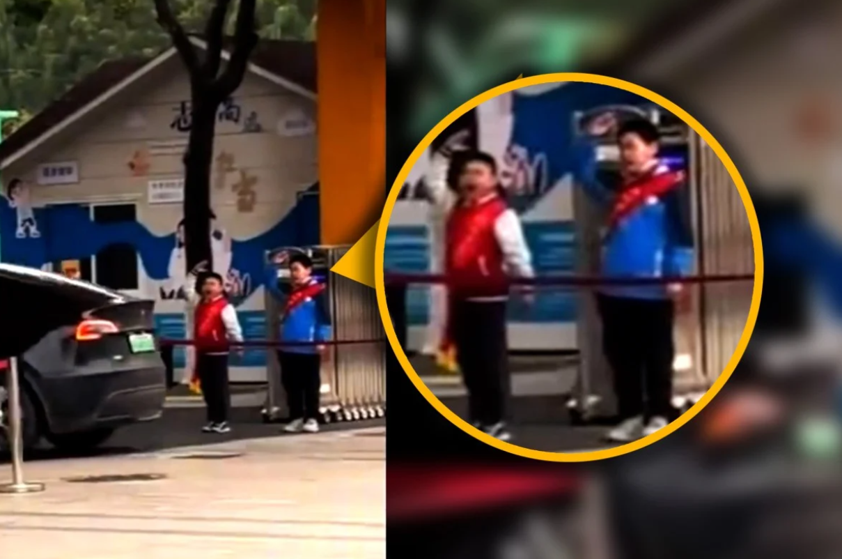 Sự việc xảy ra tại Trường Tiểu học Jianqiao, thành phố Hàng Châu, tỉnh Chiết Giang, một ngôi trường hơn 100 năm tuổi, nổi tiếng là trường trọng điểm địa phương và được coi là mô hình về văn hóa ứng xử. Trong clip, bốn học sinh mang băng “đội tuần tra” đứng trước cổng trường, giơ tay chào và hô “chào buổi sáng” mỗi khi có xe giáo viên đi vào.