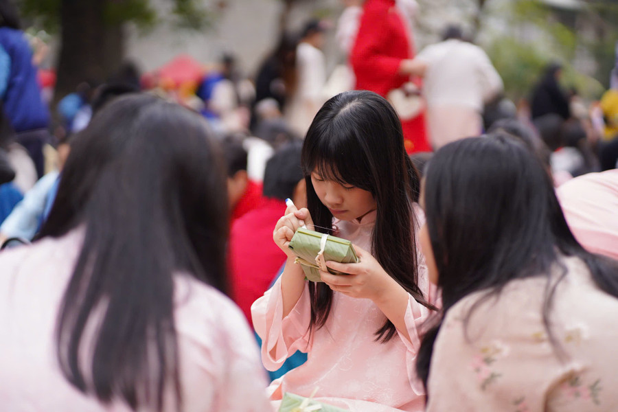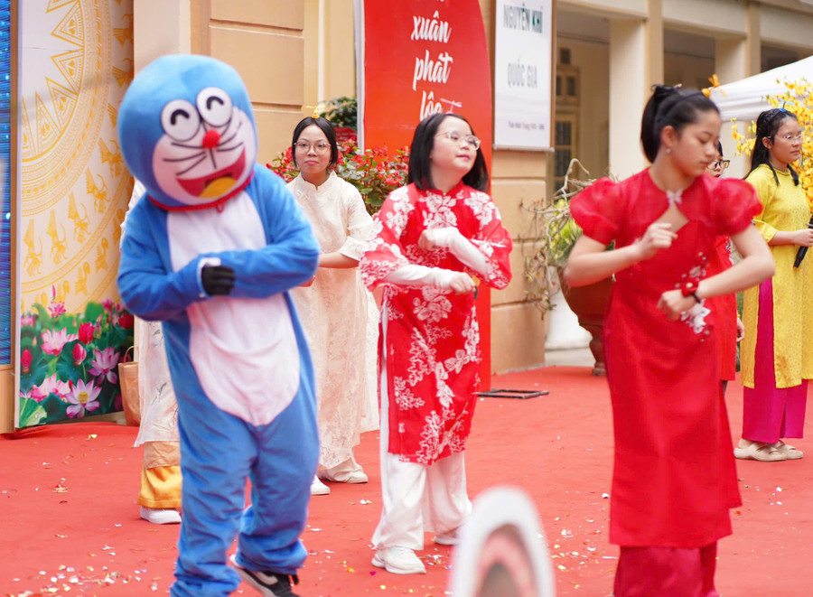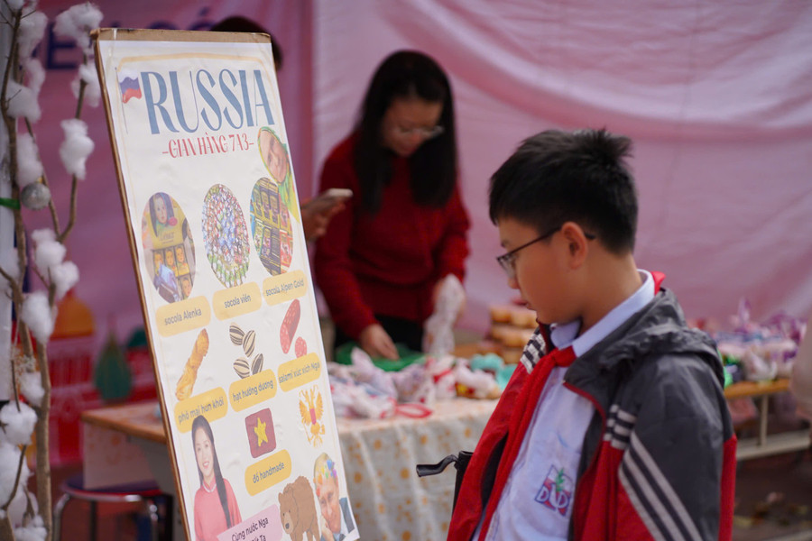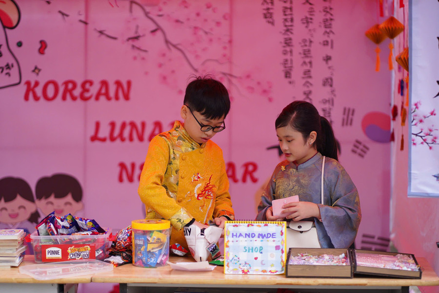 Các em học sinh đã được chơi các trò chơi dân gian, tìm hiểu văn hóa các nước và gói bánh chưng tặng gia đình. Bên cạnh không khí Tết truyền thống của Việt Nam, gian hàng của Hàn Quốc mang vẻ thanh lịch với trang phục hanbok rực rỡ. Còn gian hàng Nhật Bản xuất hiện nhân vật nổi tiếng Doraemon cùng đèn lồng cá chép.