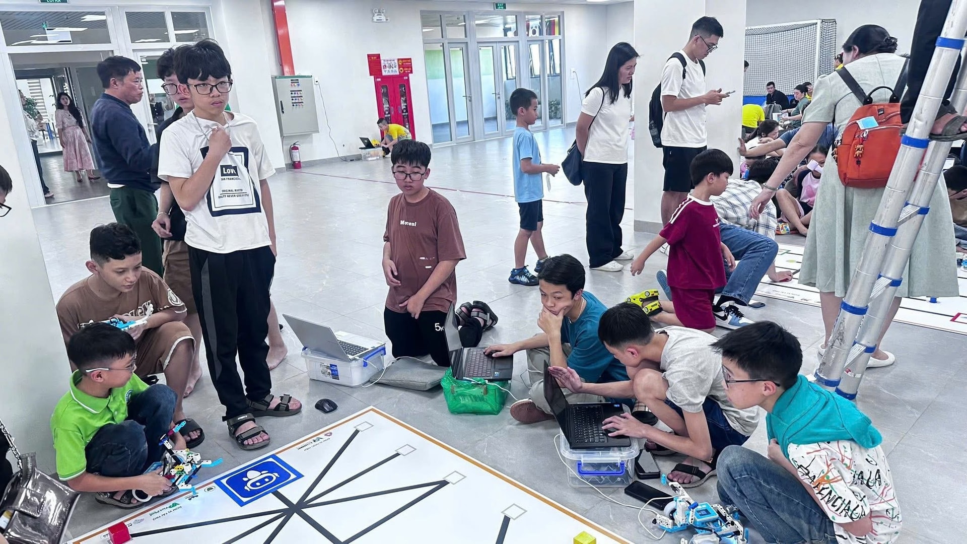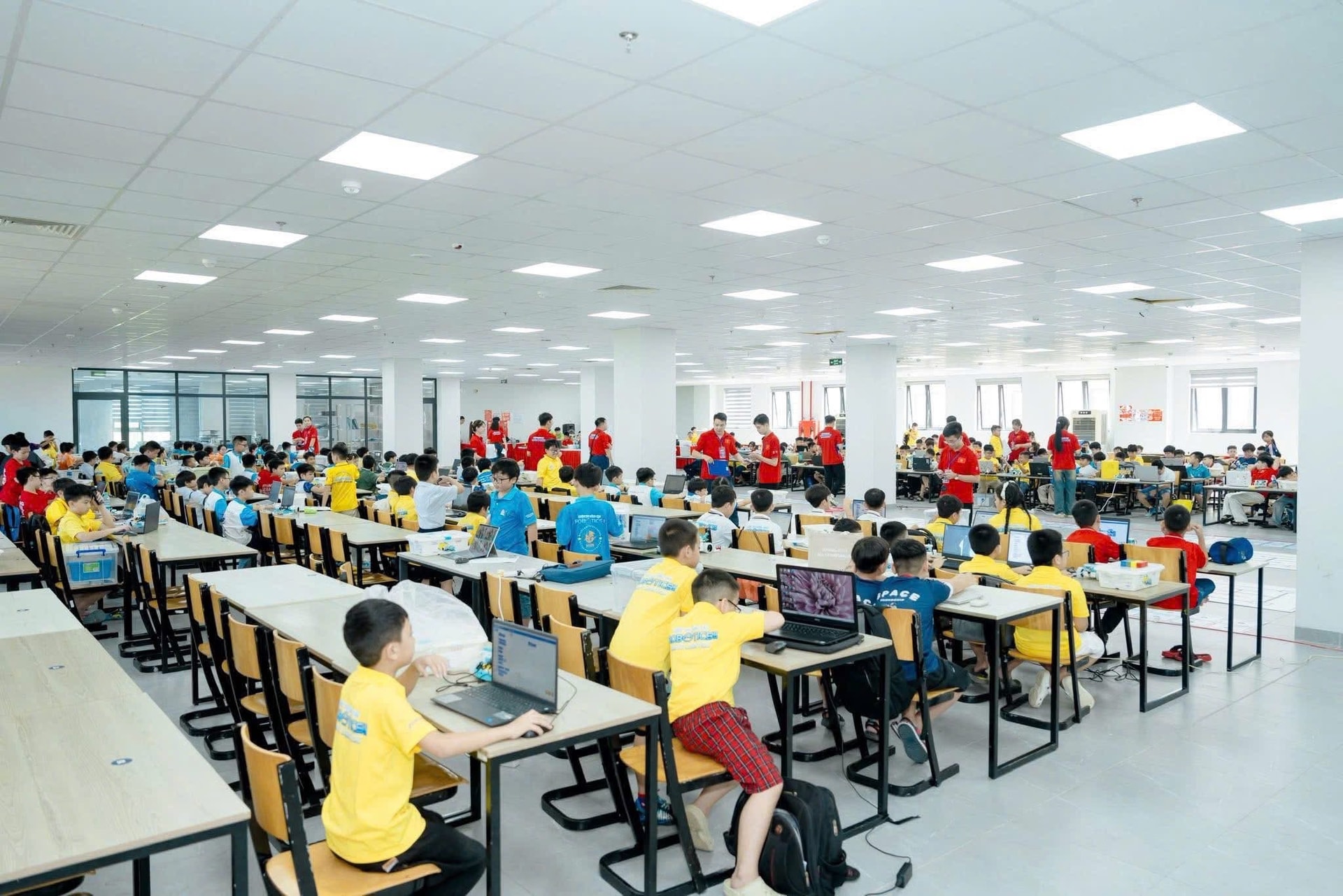 Tham gia bảng R2 của vòng chung kết, đoàn học sinh phường Xuân Hương - Đà Lạt có 10 đội thi, đến từ Trường THCS Nguyễn Du và Trường THCS Quang Trung, cùng tranh tài ở các nội dung thiết kế, lập trình và điều khiển robot.