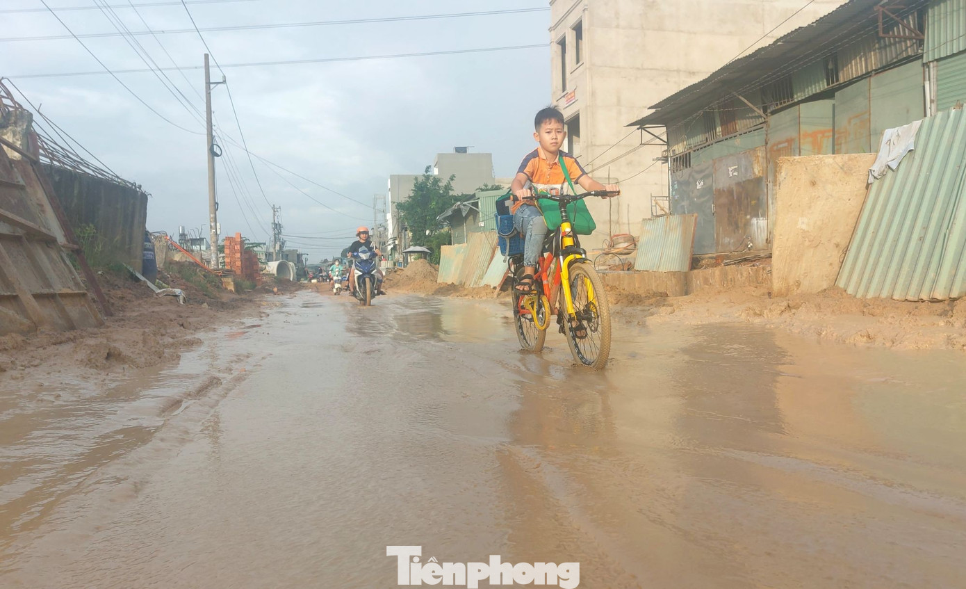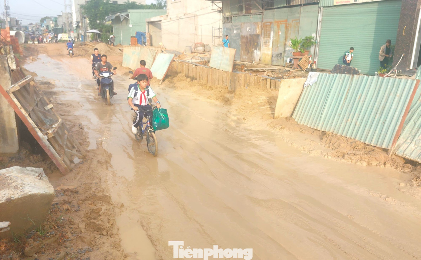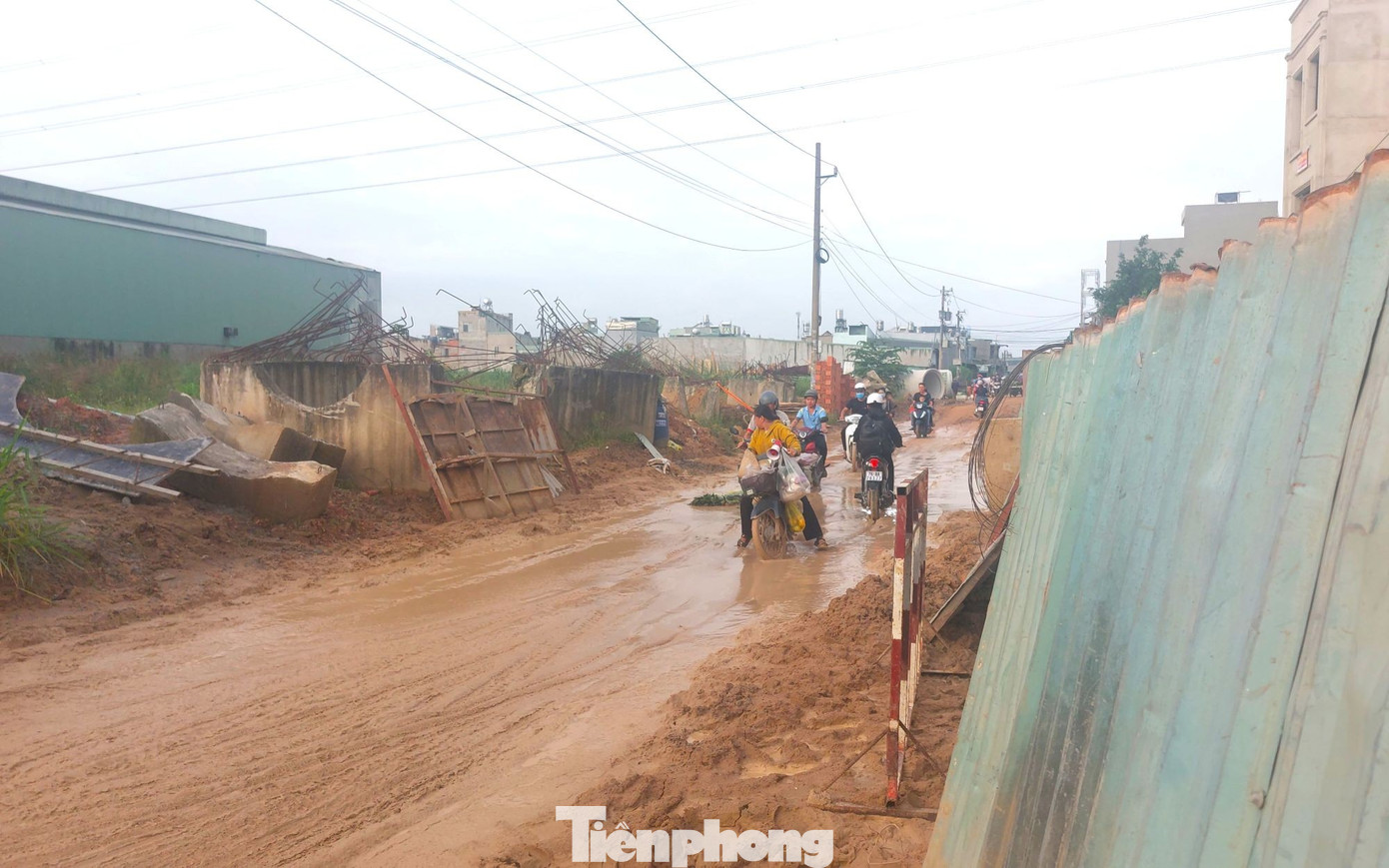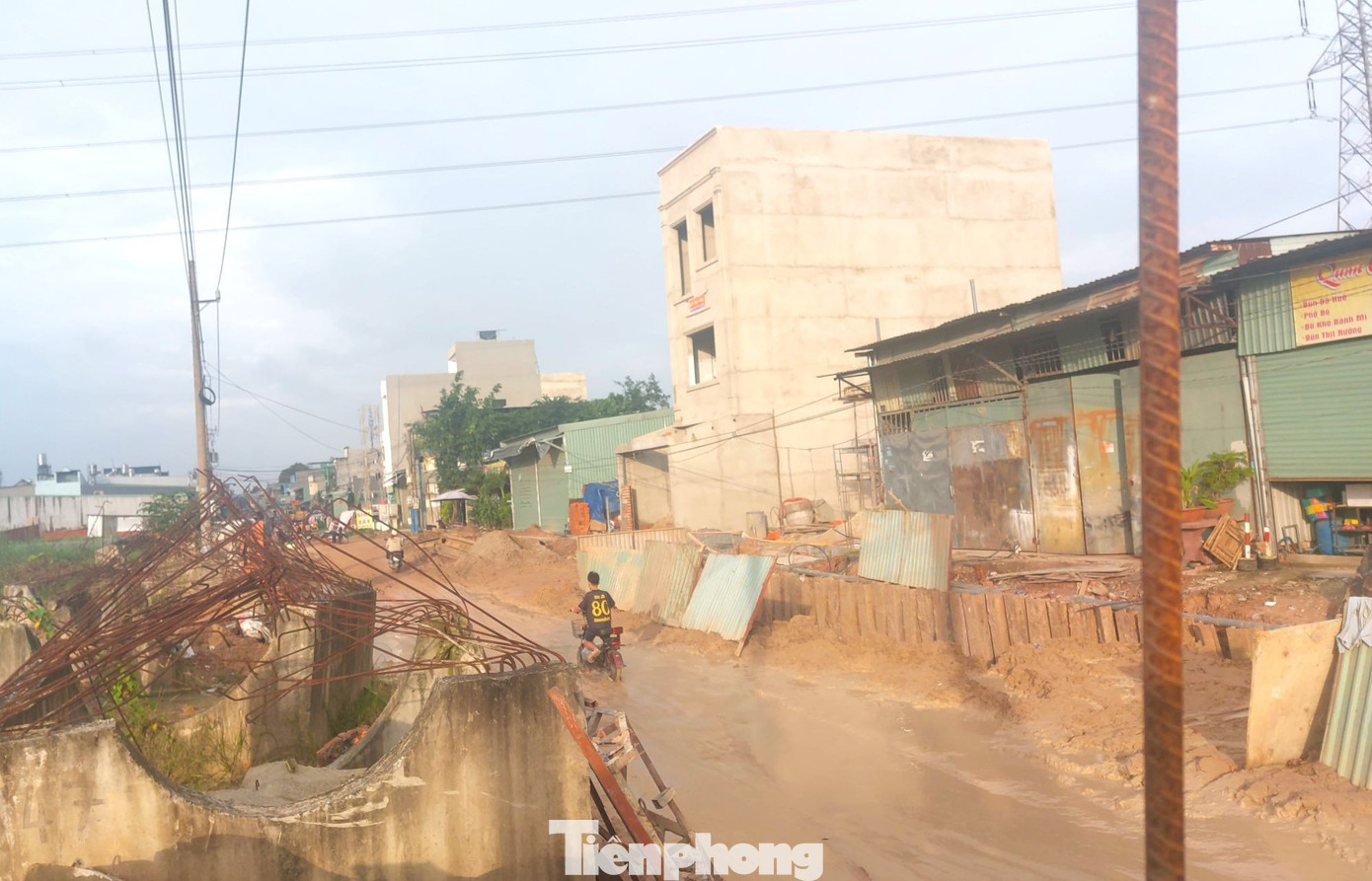 Ngày 3/11, ghi nhận của phóng viên báo Tiền Phong, công trình nâng cấp, mở rộng đường Bình Chuẩn 63 nối tiếp đường Bình Chuẩn 35 (phường An Phú, TPHCM) đang thi công dang dở.