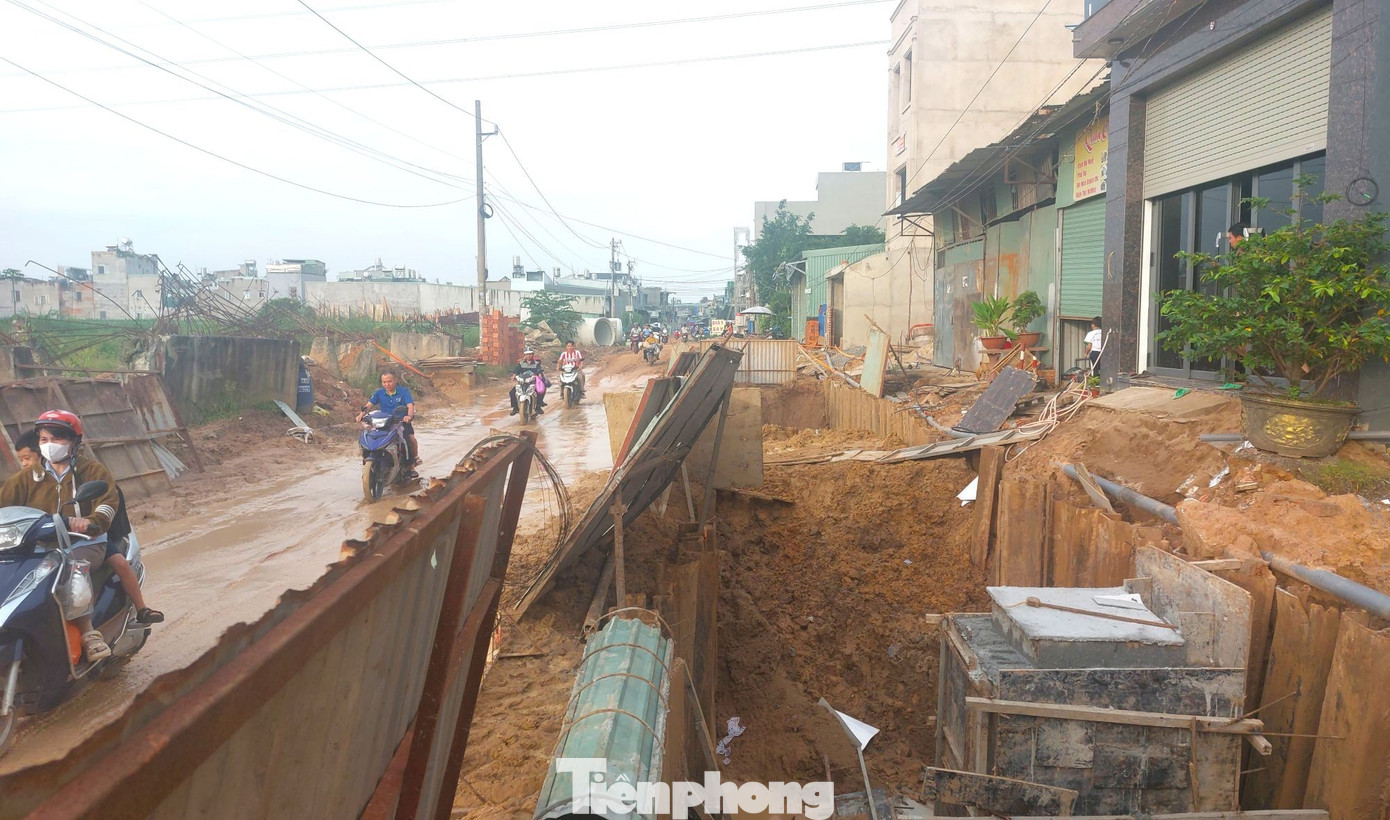 Công trình thi công dang dở khiến việc đi lại của người dân gặp nhiều khó khăn.
