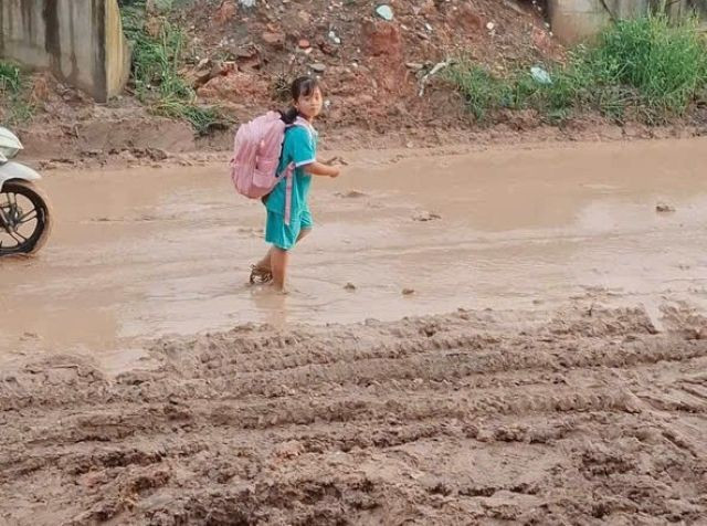 Video: Học sinh vất vả đến trường trên đường thi công dang dở