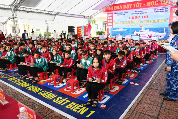 Tại Nghệ An, Bộ Tư lệnh Vùng Cảnh sát biển 1 cũng đã phối hợp với Phòng Văn hóa - Xã hội phường Cửa Lò (Nghệ An) và 6 trường THCS trên địa bàn tổ chức Cuộc thi “Em yêu biển, đảo quê hương” năm 2025 với sự tham gia tranh tài của 100 thí sinh tiêu biểu của 6 trường THCS trên địa bàn.
