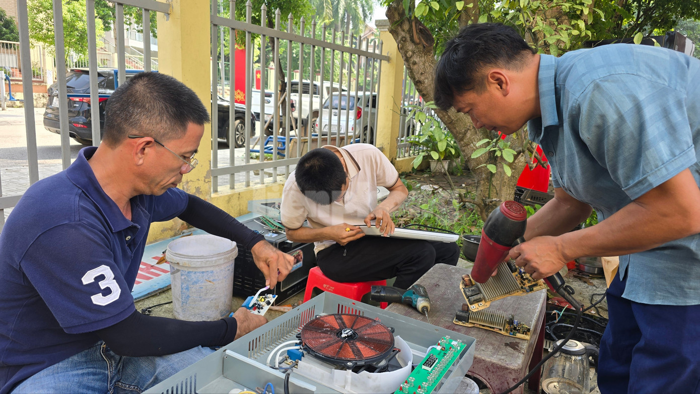 Các tổ chức, cá nhân hỗ trợ sửa chữa đồ điện cho người dân vùng lũ Thái Nguyên.