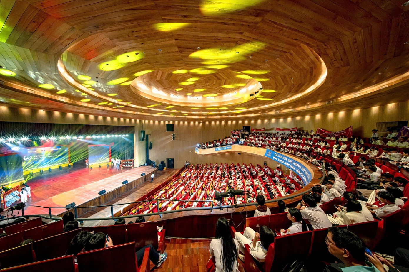 Điểm cầu Nhà hát sông Hương sẵn sàng cho buổi chung kết Đường lên đỉnh Olympia 2025. Ảnh VTH