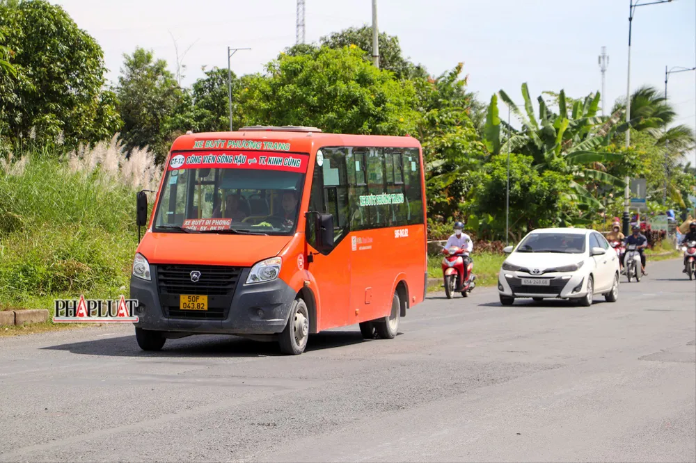 Tuyến xe buýt CT-12 đi từ công viên Sông Hậu đến Kinh Cùng, với chiều dài 43km, là một trong hai tuyến xe buýt liên tỉnh vừa được chuyển thành tuyến nội thành. Ảnh: CHÂU ANH