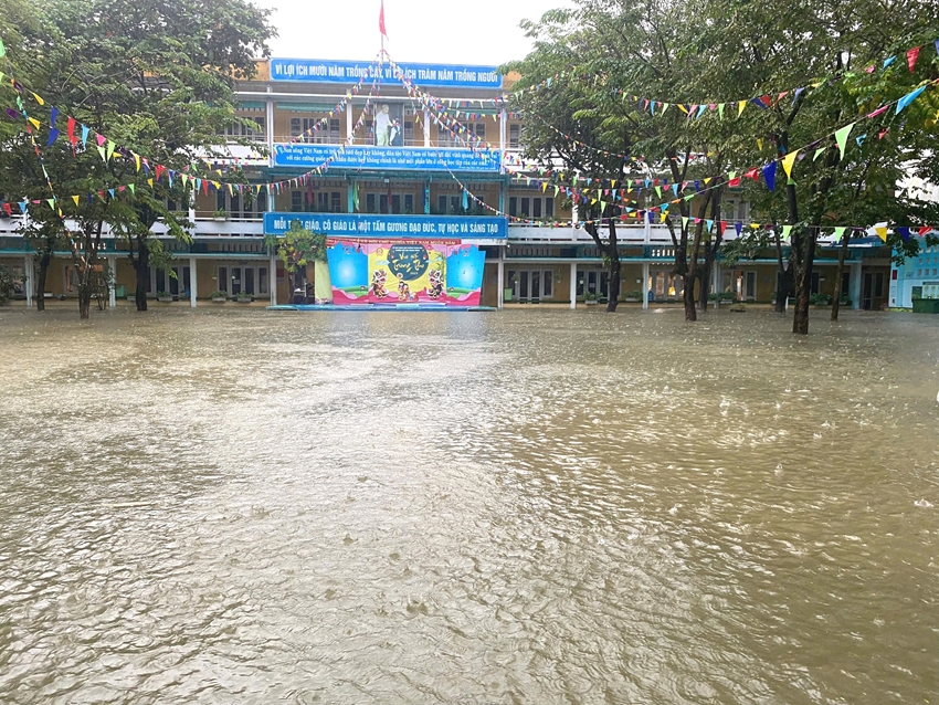 Trường Tiểu học Quang Trung (phường Thuận Hóa) ngập nước