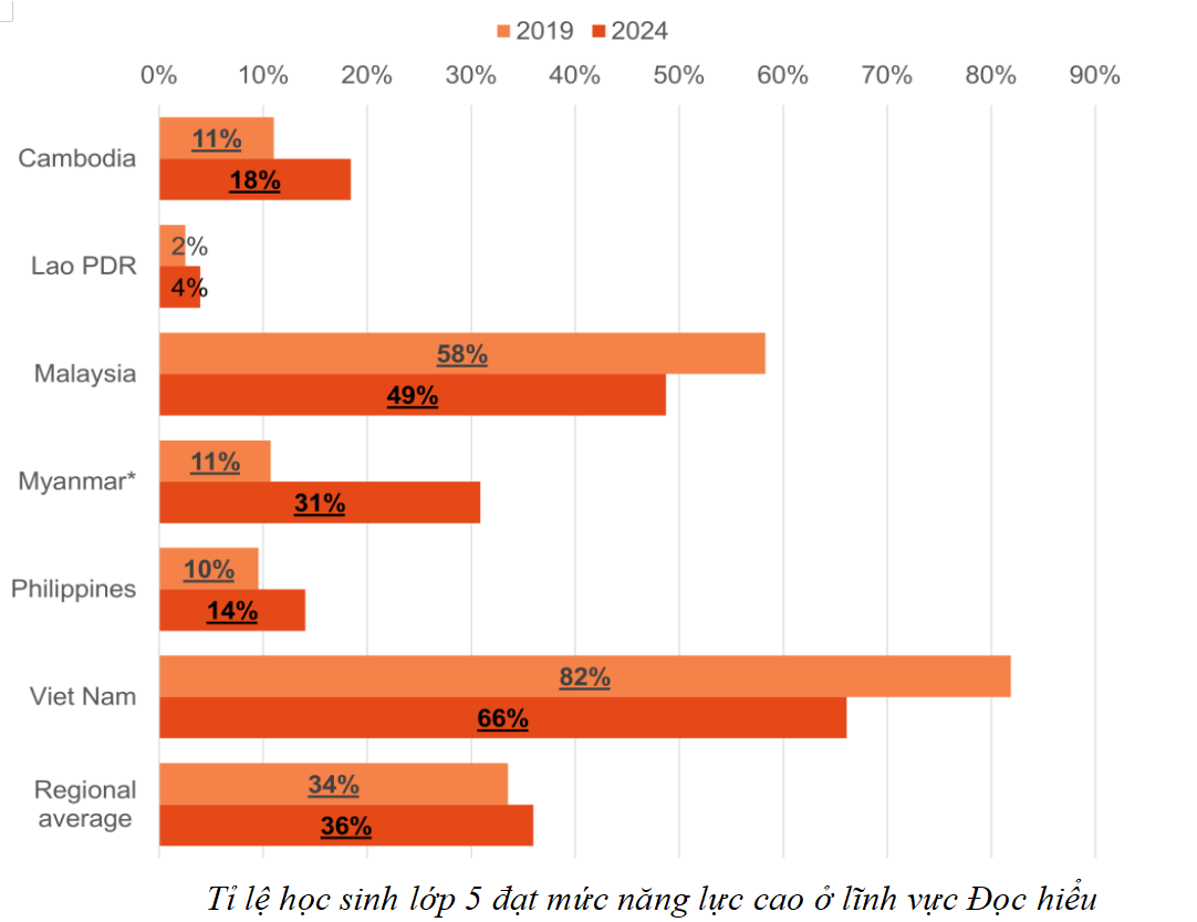 Ở chu kỳ 2024, tỉ lệ học sinh Việt Nam đạt mức năng lực cao ở lĩnh vực Đọc hiểu là 66%, cao hơn tỉ lệ của các quốc gia còn lại và cao hơn mức trung bình của khu vực (đạt 40%).