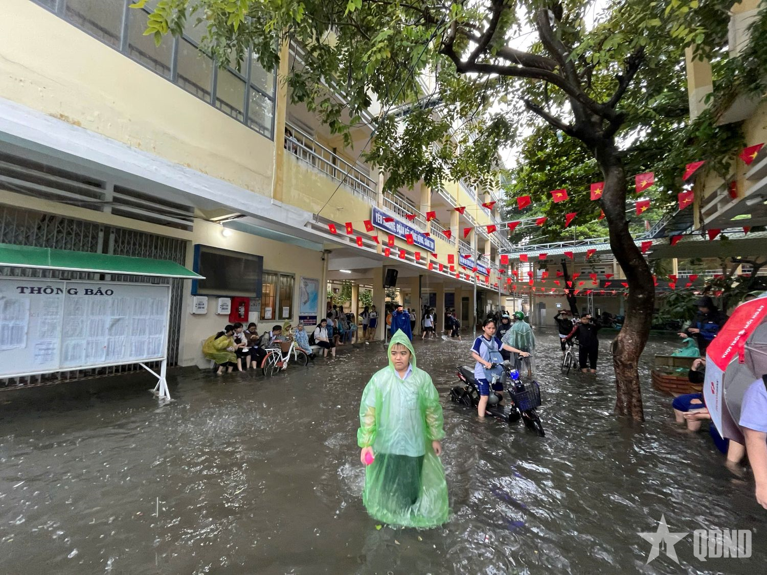 Đợt mưa to ngày 16-10 gây ngập tại Trường THCS Nguyễn Khuyến (Bắc Nha Trang, Khánh Hòa). Ảnh: N.HOÀNG