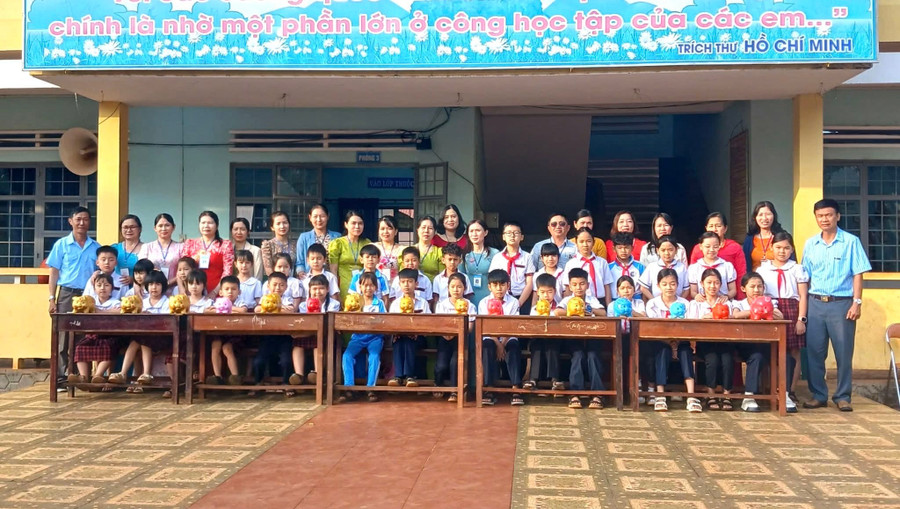 16/16 lớp tại điểm trường chính Trường Tiểu học Tôn Đức Thắng đã tổ chức “đập” heo đất thu được 8.483.000 đồng để hỗ trợ những học sinh “Vượt khó học tốt”. Ảnh: ĐVCC
