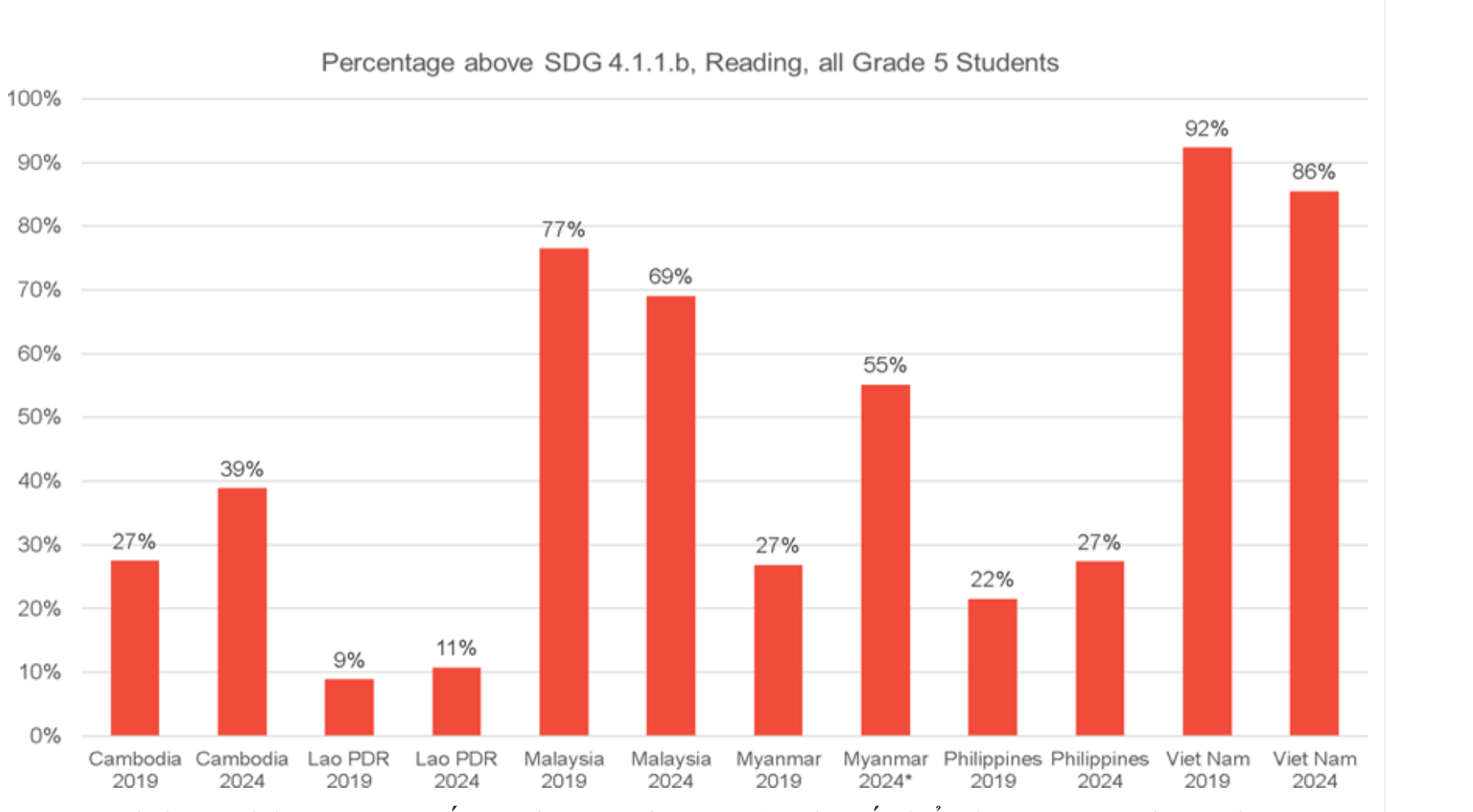 Việt Nam cũng có tỷ lệ học sinh đạt mức năng lực tối thiểu cao nhất so sánh với Mục tiêu phát triển bền vững ở lĩnh vực Đọc hiểu (86%) và Toán học (95%) theo kết quả ở chu kì 2024.