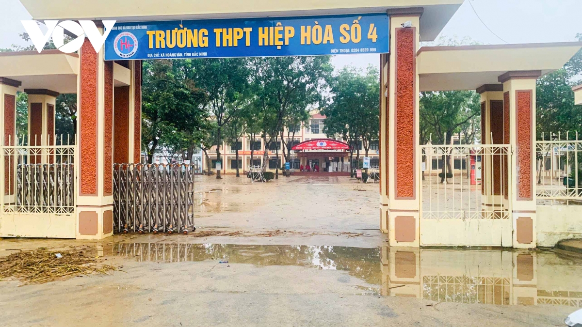 Thầy Nguyễn Đức Thiện – Hiệu trưởng Trường THPT Hiệp Hòa số 4, tỉnh Bắc Ninh cho biết, ảnh hưởng của hoàn lưu bão số 11, toàn bộ diện tích nhà trường bị ngập sâu trong biển nước, với vị trí sâu nhất khoảng 1,5m. Trong ngày 8/10 ngay khi nhận được thông tin chỉ đạo, nhà trường chủ động thông báo tới toàn thể giáo viên, học sinh nghỉ học tại nhà để đảm bảo an toàn.