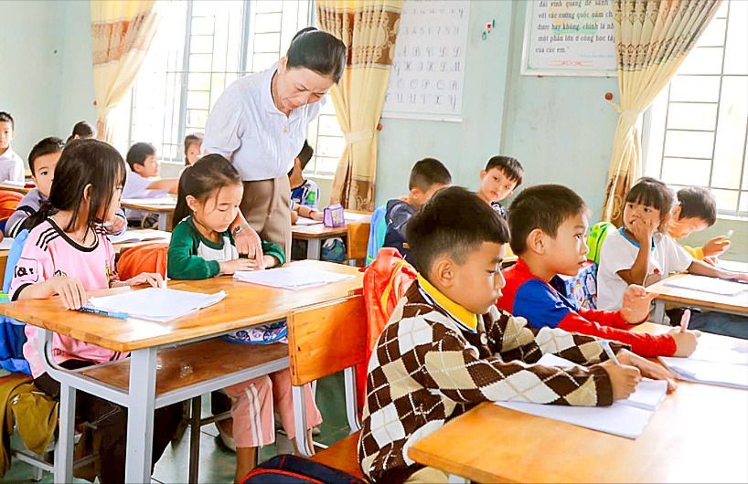 Học sinh Trường Tiểu học Hòa Thịnh (tỉnh Đắk Lắk) đến lớp đầy đủ trong ngày 1-12. Ảnh: MAI CƯỜNG