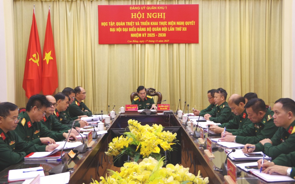 Hội nghị quán triệt nội dung Nghị quyết Đại hội đại biểu Đảng bộ Quân đội lần thứ XII nhiệm kỳ 2025 - 2030; thông báo nhanh kết quả Hội nghị lần thứ 14 Ban Chấp hành Trung ương Đảng khóa XIII; quán triệt, triển khai thực hiện Chương trình hành động thực hiện Nghị quyết Đại hội đại biểu Đảng bộ Quân đội lần thứ XII, nhiệm kỳ 2025 - 2030; nội dung bổ sung, điều chỉnh Chương trình hành động, Chương trình làm việc toàn khóa của Đảng ủy Quân khu...