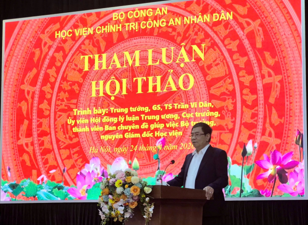 Đề dẫn hội thảo, Trung tướng, PGS.TS Phan Xuân Tuy, Giám đốc Học viện Chính trị CAND cho biết, Học viện Chính trị CAND được thành lập ngày 1/3/2014, và chính thức đi vào hoạt động từ ngày 25/4/2014. Trải qua 12 năm xây dựng và phát triển, Học viện Chính trị CAND đã không ngừng nỗ lực, phấn đấu, từng bước khẳng định vị trí và phát huy vai trò là đơn vị trọng điểm đầu ngành về khoa học chính trị, xây dựng lực lượng CAND.