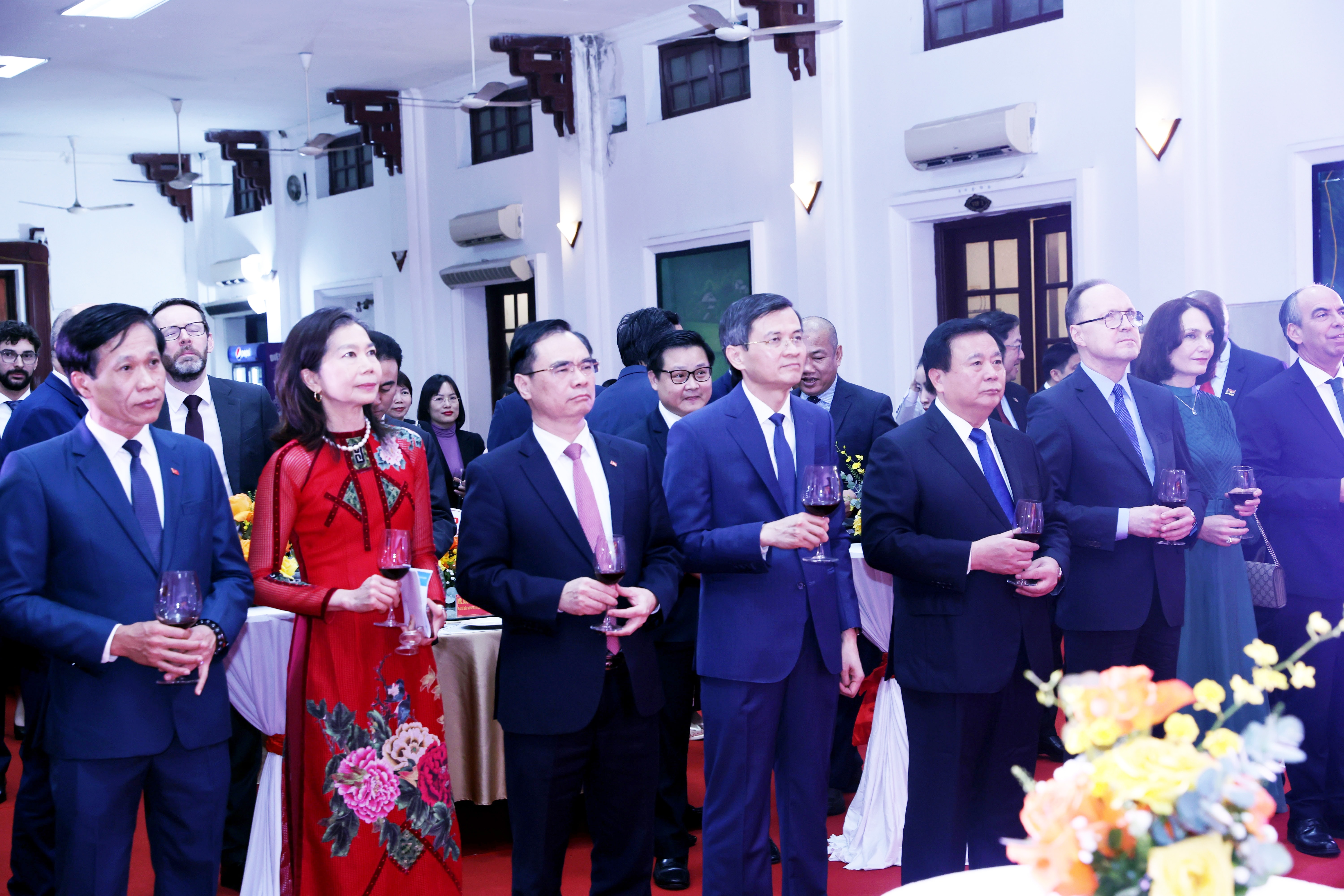 Tham dự cuộc gặp mặt có: Ủy viên Bộ Chính trị, Giám đốc Học viện Chính trị quốc gia Hồ Chí Minh Đoàn Minh Huấn; Chủ tịch Hội đồng Lý luận Trung ương, nguyên Giám đốc Học viện Chính trị quốc gia Hồ Chí Minh Nguyễn Xuân Thắng; Ủy viên Trung ương Đảng, Tổng Biên tập Tạp chí Cộng sản và các Đại sứ, Trưởng Cơ quan đại diện ngoại giao và các đối tác quốc tế tại Việt Nam.