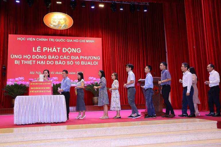 Cán bộ, công chức, viên chức, giảng viên và học viên đang công tác, học tập tại Học viện Chính trị quốc gia Hồ Chí Minh ủng hộ đồng bào bị thiệt hại do bão số 10.
