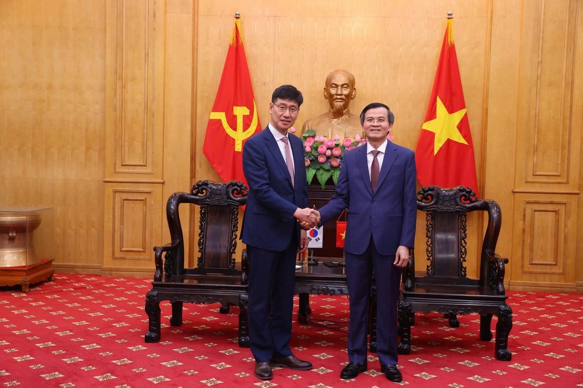 Phát biểu tại buổi tiếp, Tổng Giám đốc Samsung Việt Nam Na Ki Hong chúc mừng PGS.TS Đoàn Minh Huấn vừa được bầu làm Ủy viên Bộ Chính trị khóa XIV (tháng 1/2026) và được bổ nhiệm giữ chức Giám đốc Học viện.