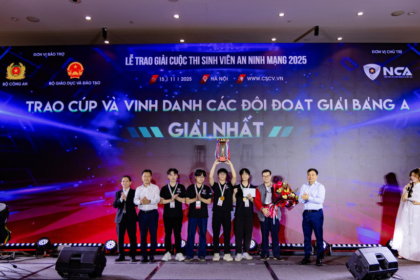 Học viện Công nghệ Bưu Chính Viễn thông đã xuất sắc vô địch cuộc thi Sinh viên An ninh mạng 2025. (Ảnh: PV/Vietnam+)