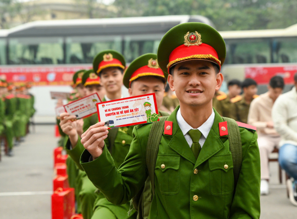 Niềm vui của học viên Học viện CSND khi nhận tấm vé xe miễn phí về quê ăn Tết với gia đình.