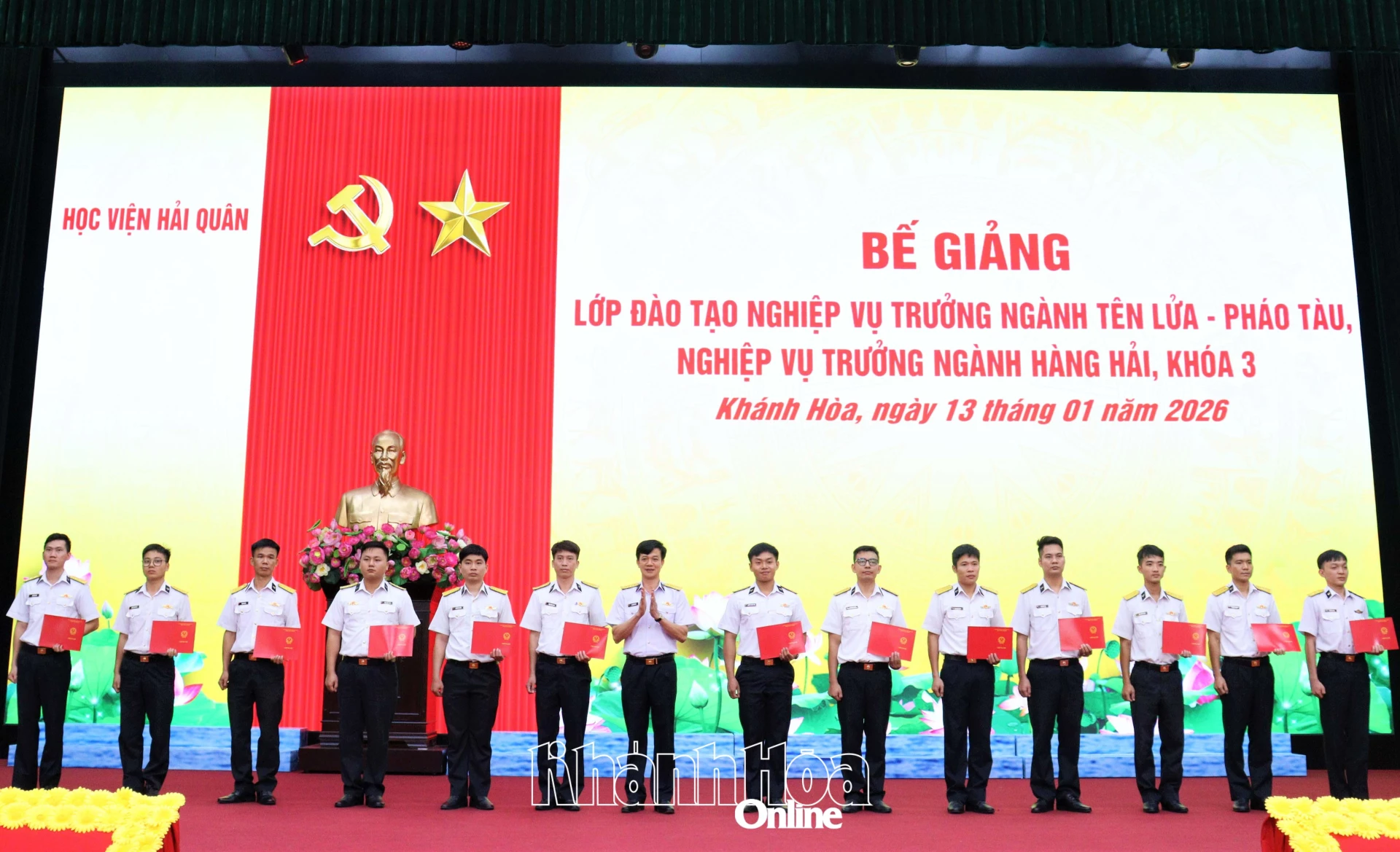 Chiều 13-1, Học viện Hải quân tổ chức bế giảng các lớp đào tạo Nghiệp vụ trưởng Tên lửa - Pháo tàu và Nghiệp vụ trưởng Hàng hải khóa 3. Đại tá, PGS, TS Lại Hồng Đông - Phó Giám đốc Học viện Hải quân chủ trì.