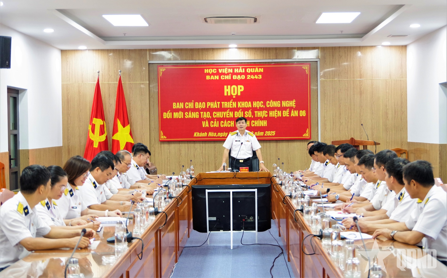 Một trong những yếu tố tạo nên thành công ban đầu trong CĐS ở HVHQ là sự đồng bộ trong lãnh đạo, chỉ đạo quyết liệt và sự phối hợp chặt chẽ, nhịp nhàng giữa các cấp, các lĩnh vực công tác. Việc thực hiện CĐS không bị phân tán, mà được tập trung về một đầu mối là “Ban chỉ đạo phát triển KHCN, đổi mới sáng tạo, CĐS, thực hiện Đề án 06 và cải cách hành chính”, còn gọi là Ban chỉ đạo 2443. Ban chỉ đạo vừa là cơ quan tham mưu, giúp việc, vừa trực tiếp kiểm tra, giám sát tiến độ các đề án, dự án CĐS. Chuẩn đô đốc Nguyễn Hữu Thoan cho biết thêm: “Chúng tôi coi trọng cơ chế phối hợp giữa lãnh đạo, chỉ huy và đội ngũ chuyên môn. Mọi kế hoạch, dự án đều được bàn bạc dân chủ, đánh giá kỹ hiệu quả, tính khả thi, tránh tình trạng đầu tư dàn trải hoặc là chỉ chạy theo phong trào. Quan điểm xuyên suốt là làm đến đâu chắc đến đó, mỗi bước đi đều tạo ra giá trị thực tiễn”.