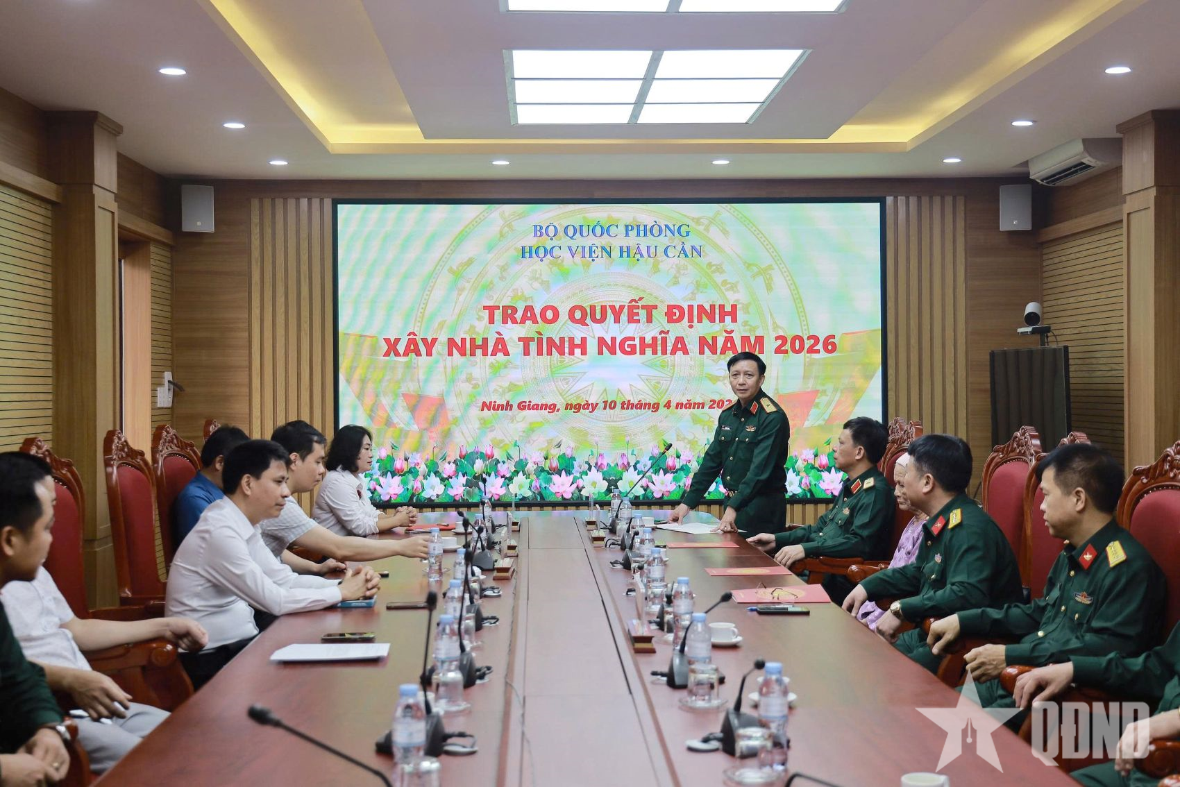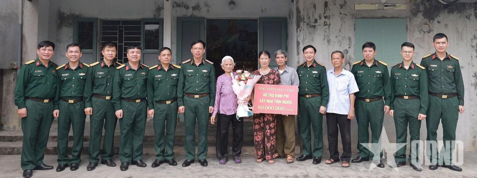 Tại hội nghị, Đại tá Lê Việt Cường, Chủ nhiệm Chính trị Học viện Hậu cần đã công bố quyết định hỗ trợ xây dựng Nhà tình nghĩa năm 2026 của Học viện đối với gia đình bà Phạm Thị Thái, với số tiền 80 triệu đồng, trích từ Quỹ “Đền ơn đáp nghĩa” của Học viện.