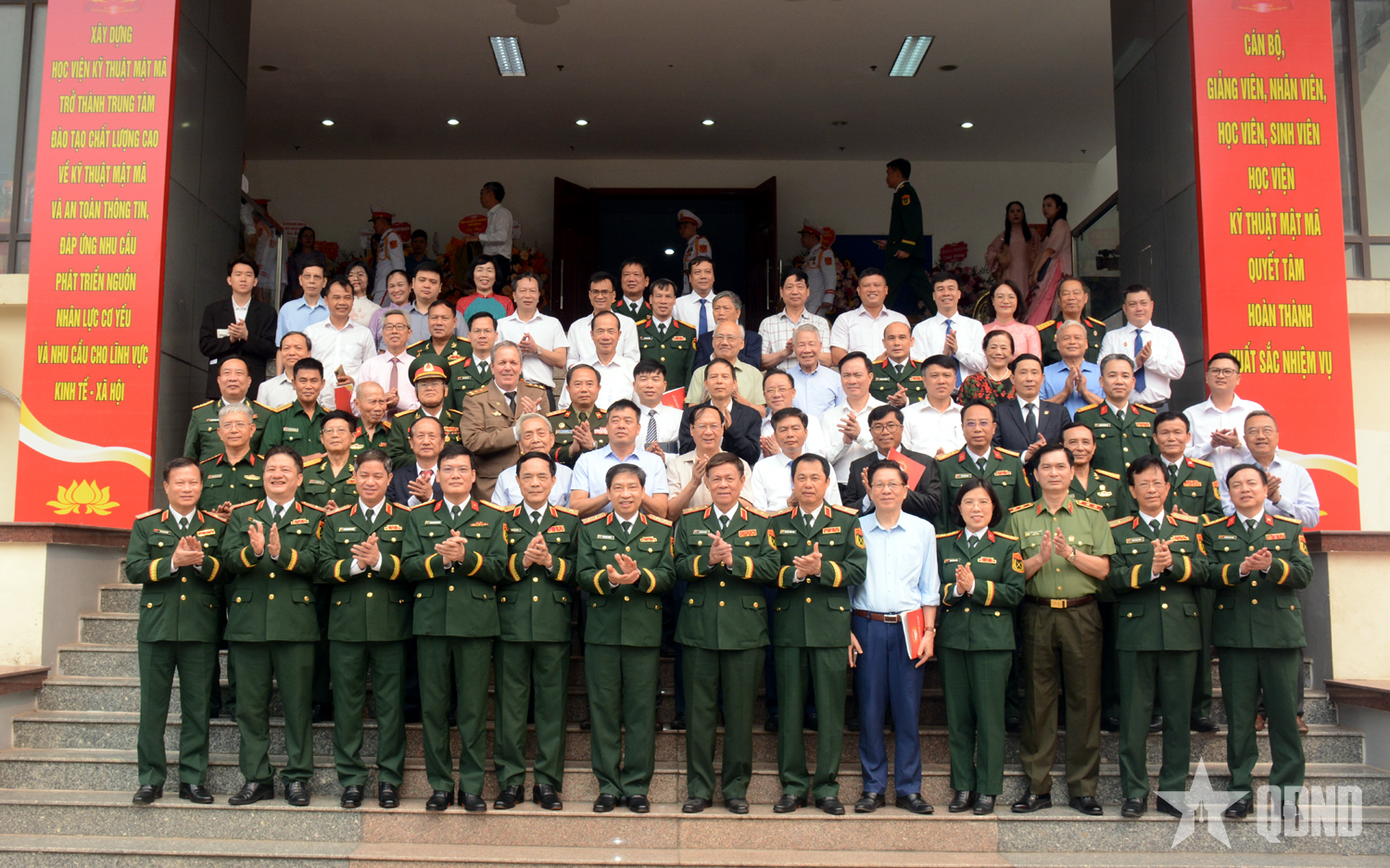 Lãnh đạo Ban Cơ yếu Chính phủ, đại biểu dự lễ kỷ niệm cùng các thế hệ cán bộ, giảng viên Học viện Kỹ thuật mật mã.