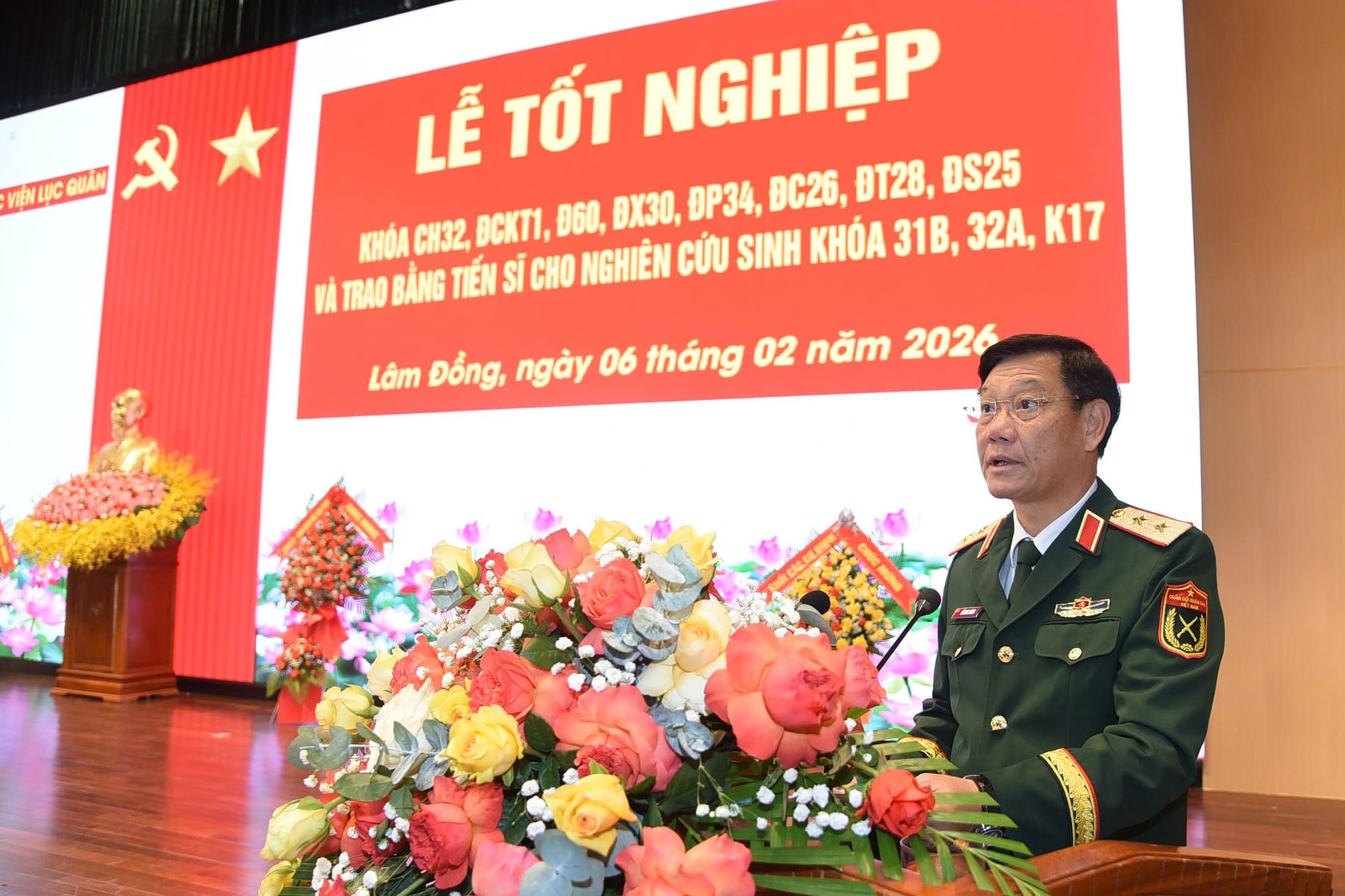 Trung tướng Đỗ Minh Xương, Giám đốc Học viện Lục quân phát biểu chúc mừng các học viên