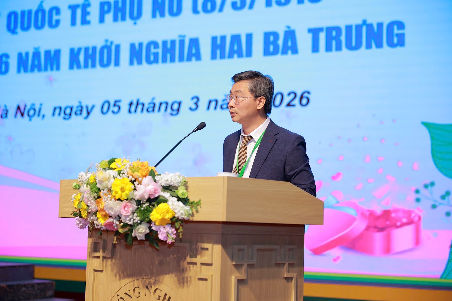 Phó Giáo sư, Tiến sĩ Nguyễn Công Tiệp, Phó Giám đốc Học viện Nông nghiệp Việt Nam chúc mừng, tri ân đội ngũ nữ cán bộ, viên chức, người lao động và sinh viên toàn Học viện.