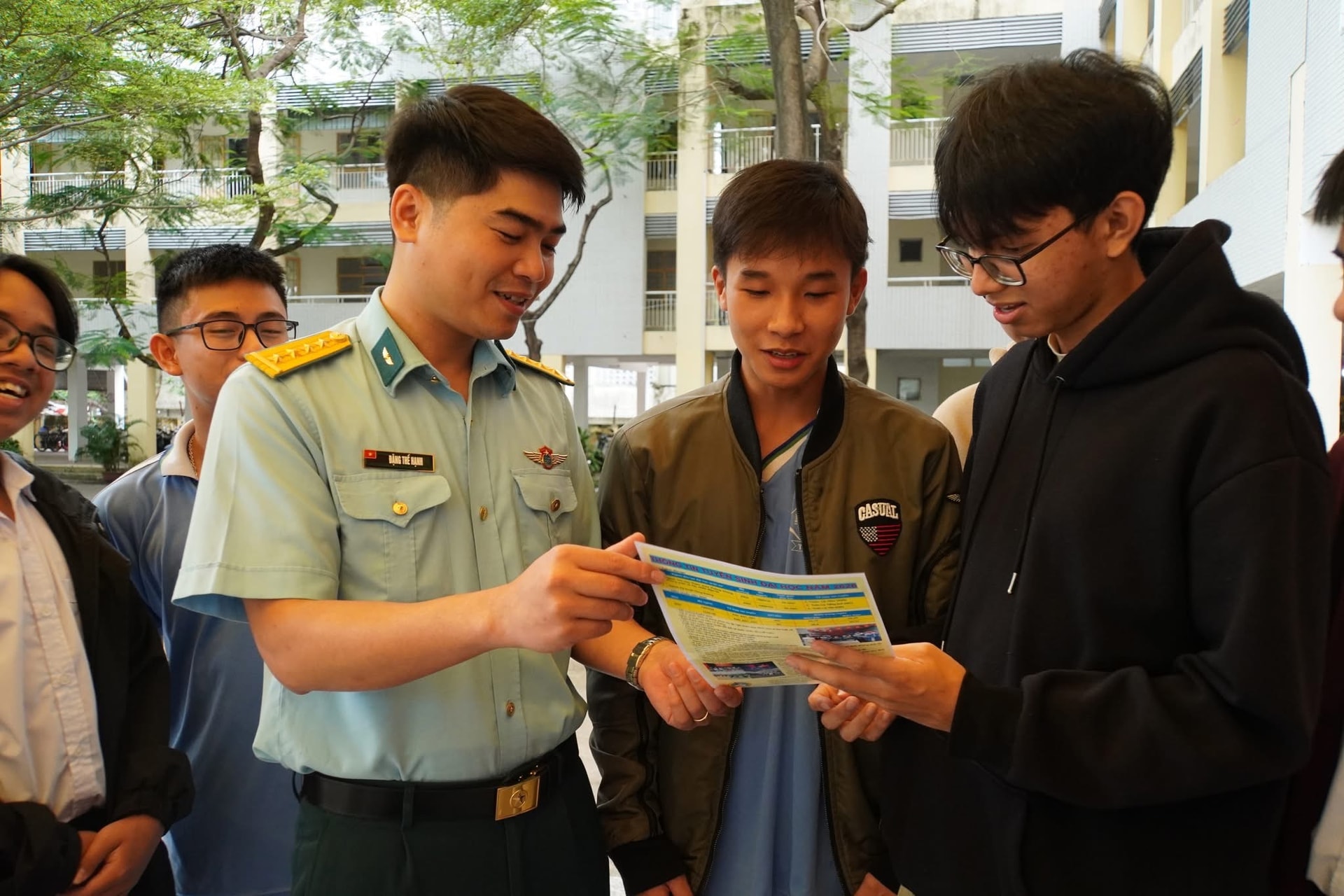 Tại các điểm tuyên truyền tuyển sinh, cán bộ, giảng viên của Học viện Phòng không - Không quân đã giới thiệu khái quát về công tác tuyển sinh quân sự của các trường quân đội trong năm 2026; các ngành nghề đào tạo, tiêu chí xét tuyển, những đối tượng được tuyển sinh và các thủ tục hồ sơ, thời gian đăng ký hồ sơ; những chế độ, chính sách của các em được hưởng trong quá trình học tập tại các trường quân đội nói chung, Học viện Phòng không - Không quân nói riêng. Đồng thời, giải đáp những câu hỏi, thắc mắc của học sinh…