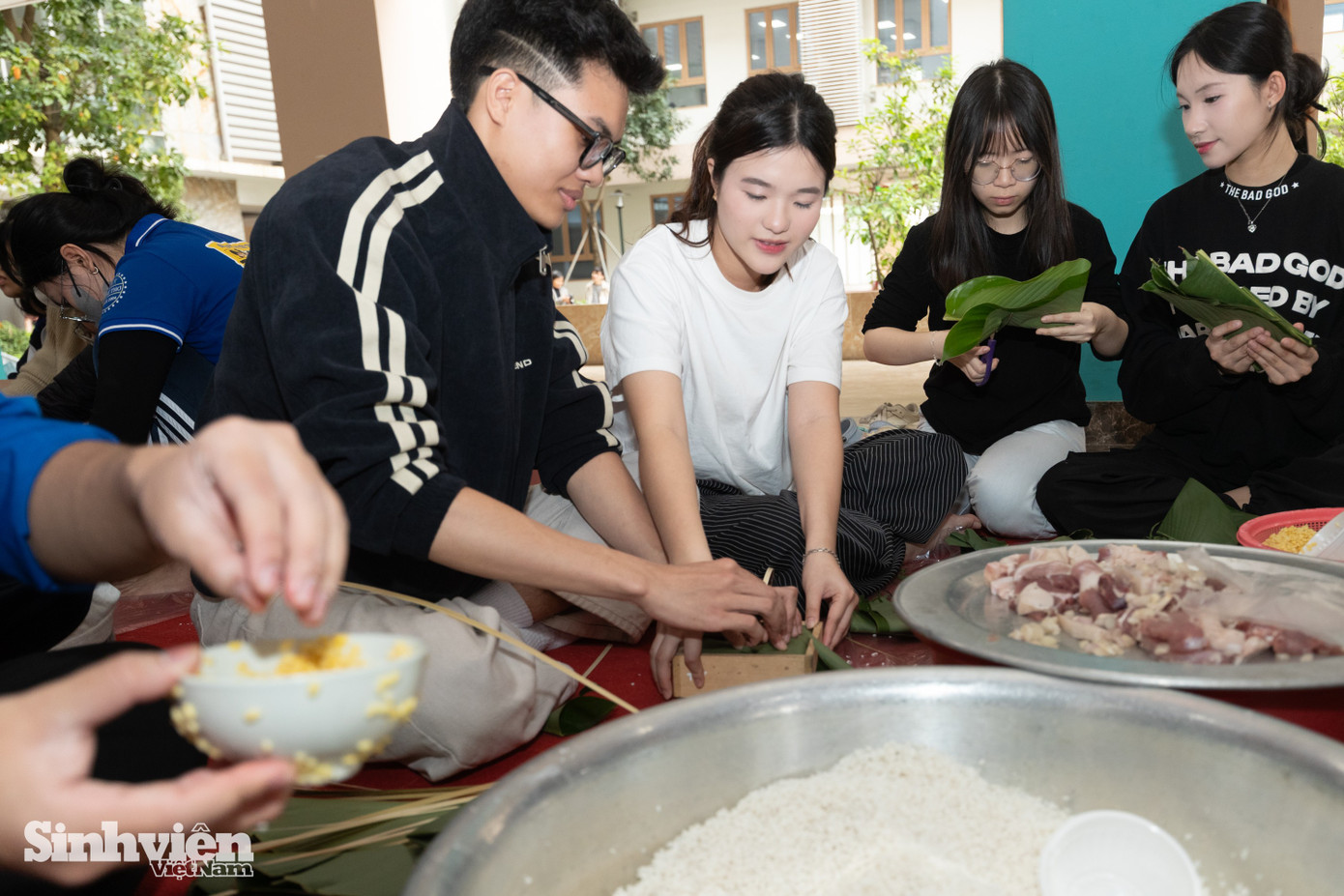 Điểm nhấn của ngày hội là hoạt động gói bánh chưng tình nguyện với sự tham gia của hàng trăm cán bộ, giảng viên và sinh viên. Gần 300 chiếc bánh chưng "nghĩa tình" sẽ được trao tặng lưu học sinh Lào và trẻ em có hoàn cảnh khó khăn. Dịp này, 12 đội hình tình nguyện của Đoàn Thanh niên Học viện cũng phối hợp với phường Đông Ngạc trao quà Tết, lan tỏa yêu thương đến cộng đồng. Chương trình "Xuân yêu thương - Cùng về quê hương 2026" thực sự trở thành cầu nối gắn kết các thành viên Học viện, phát huy tinh thần tương thân tương ái mỗi dịp Tết đến xuân về.