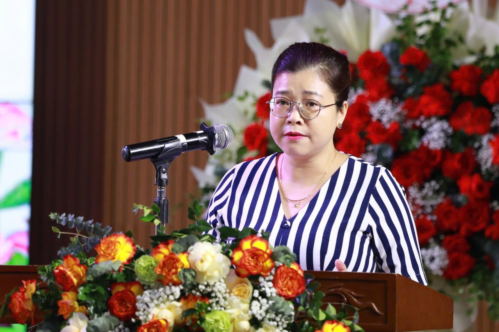 Nghiên cứu sinh Nguyễn Minh Hằng, Giám đốc Công ty TNHH tư vấn tài chính Thịnh Vượng đại diện các tân học viên, nghiên cứu sinh phát biểu. Ảnh: Đào Loan