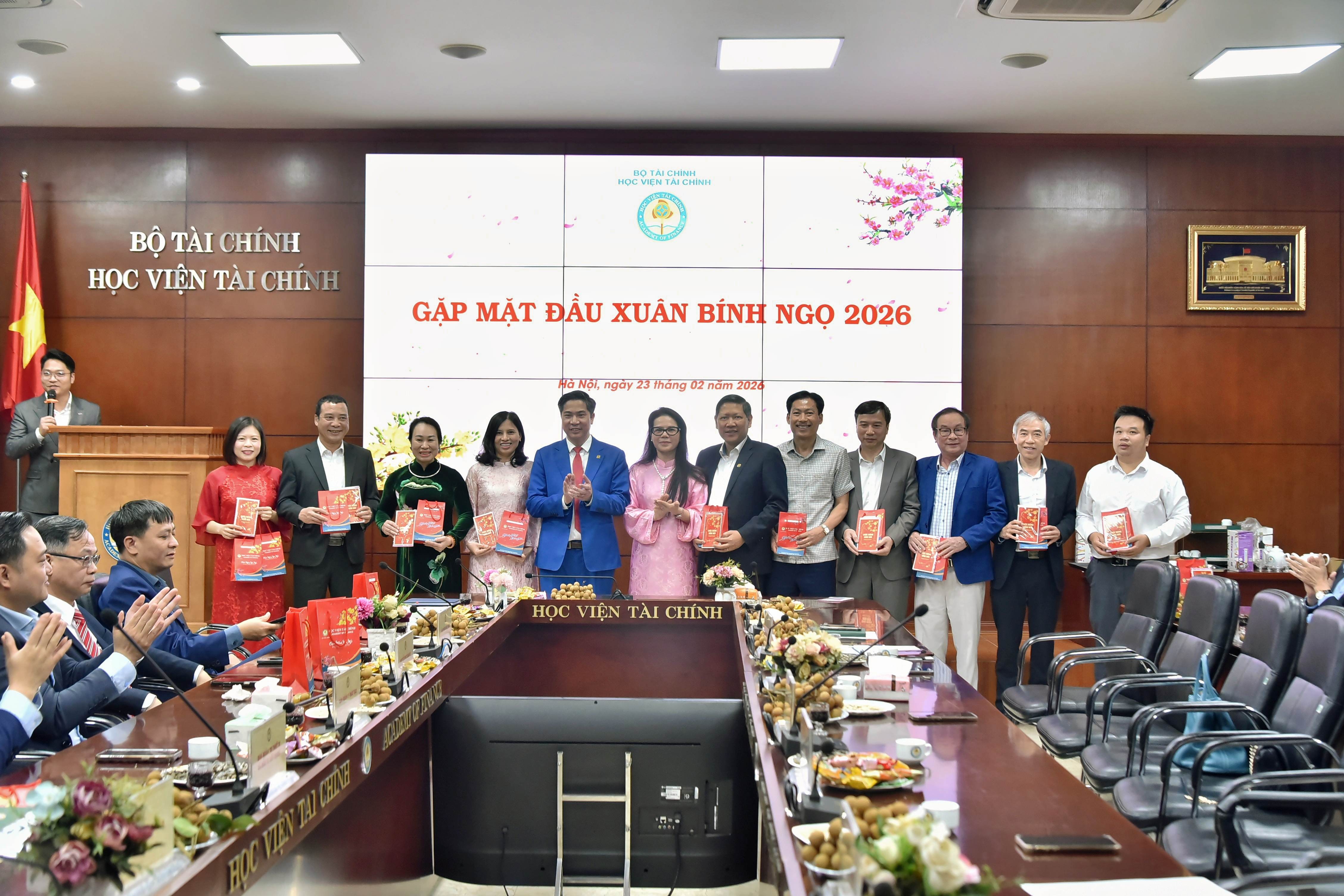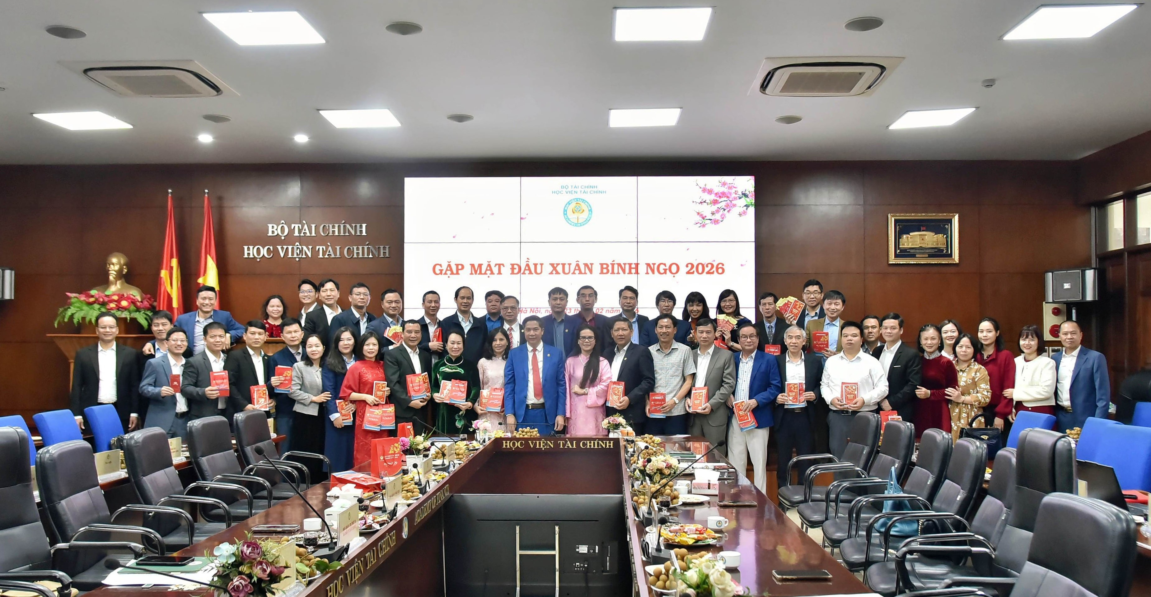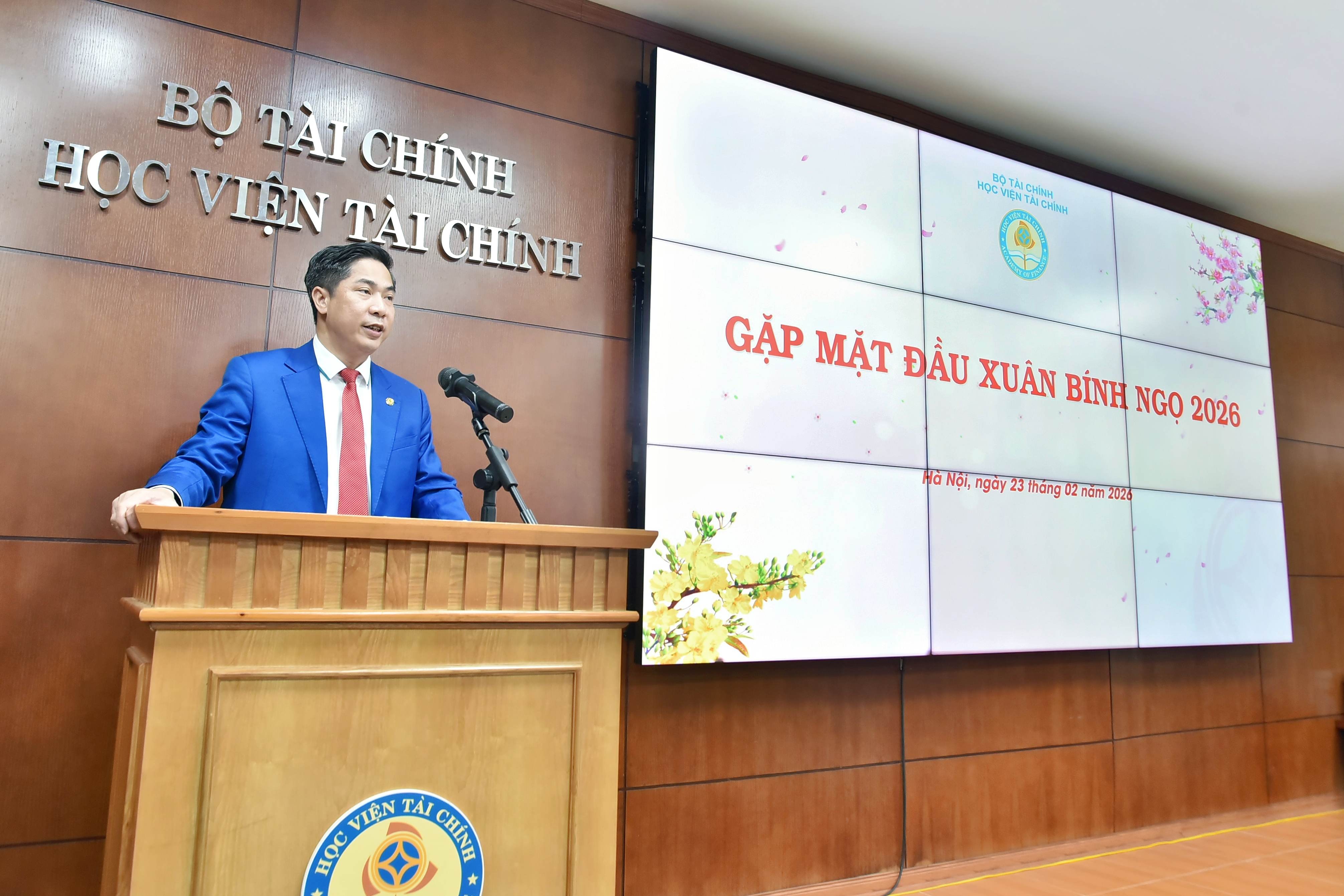 Toàn cảnh chương trình Gặp mặt đầu Xuân Bính Ngọ 2026 tại Học viện Tài chính. Ảnh: Đào Loan