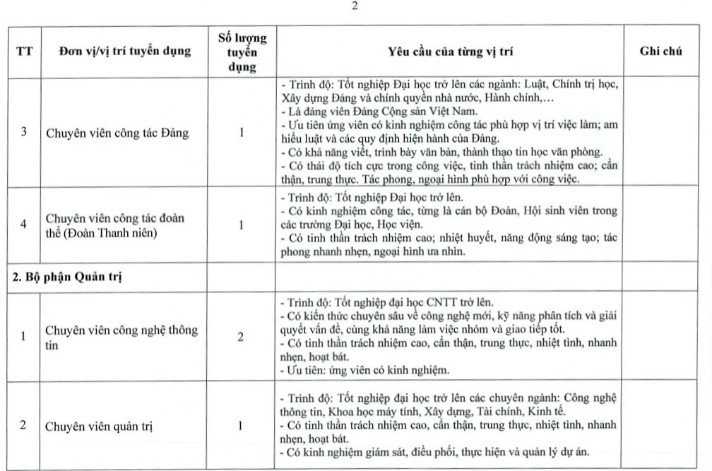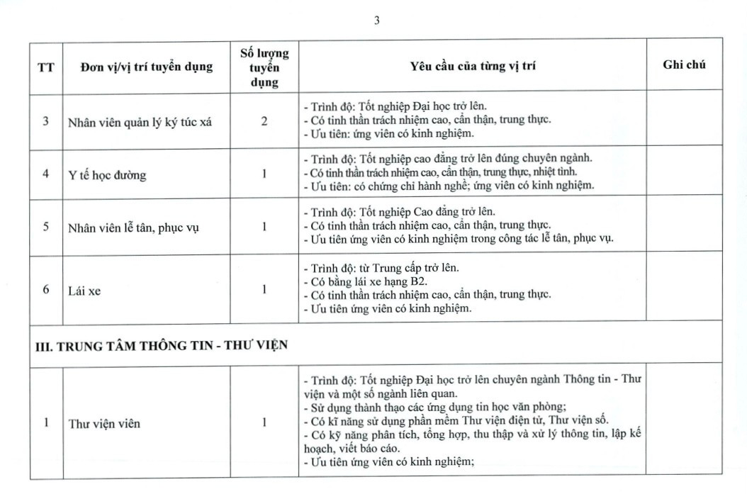 THÔNG BÁO TUYỂN DỤNG