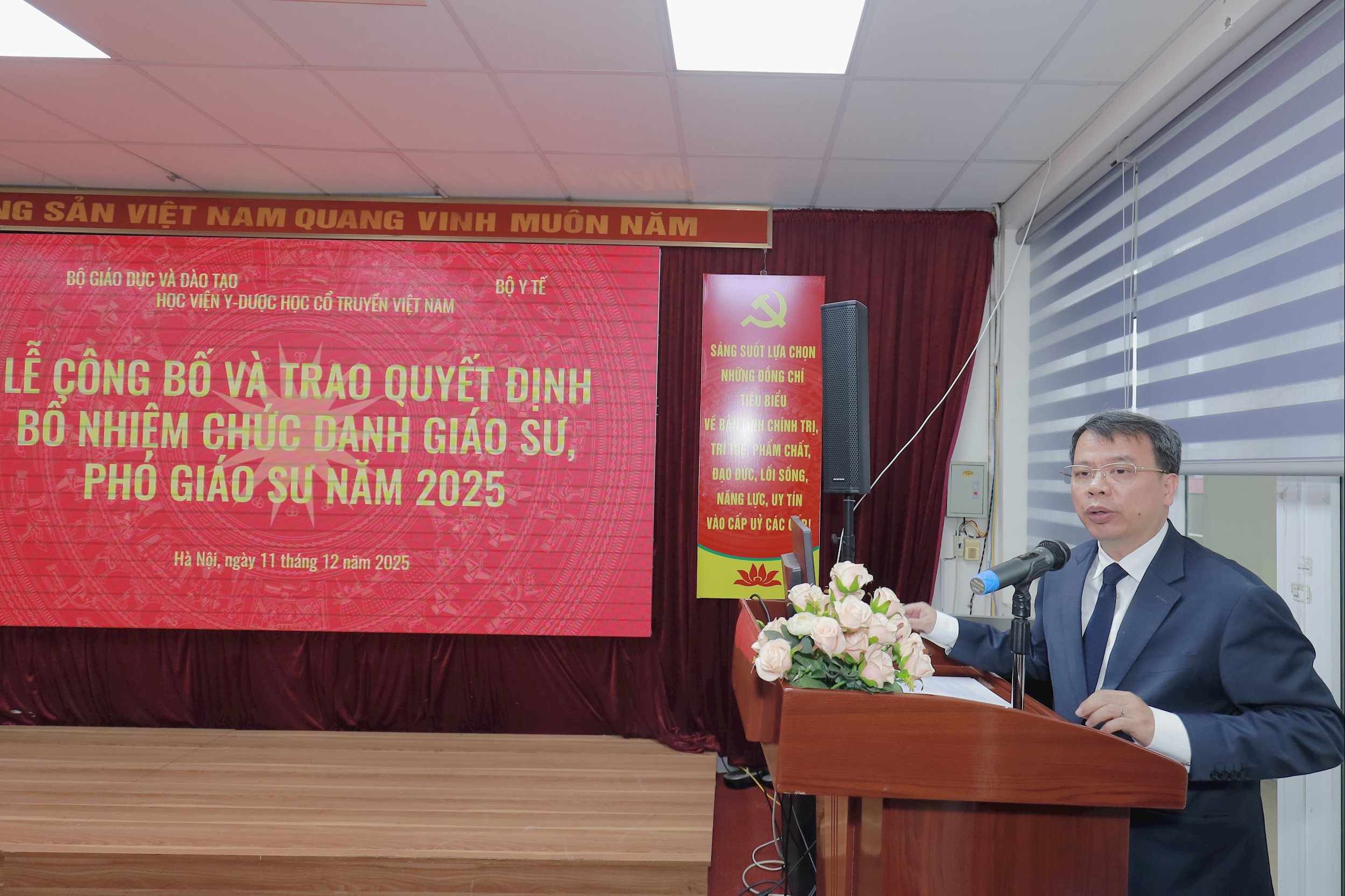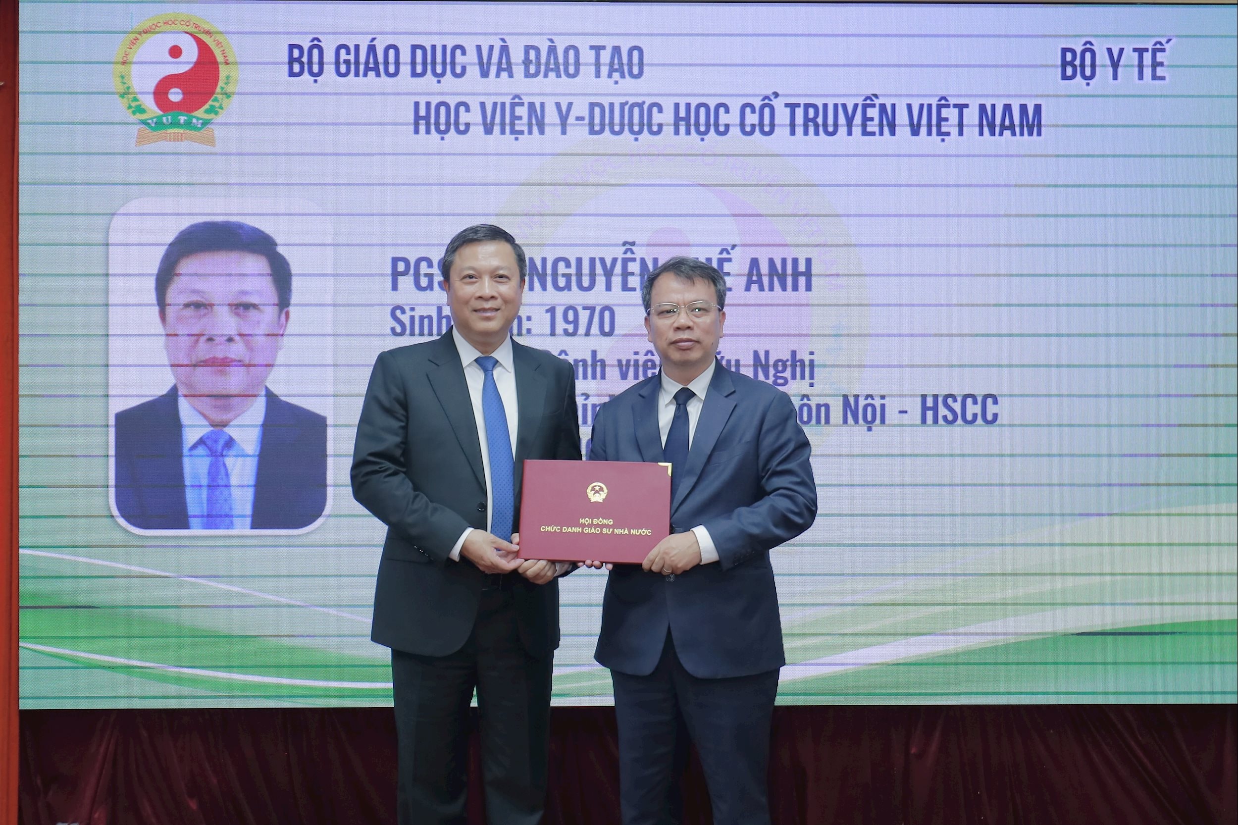 Đồng thời, bày tỏ mong muốn các tân phó giáo sư sẽ tiếp tục đồng hành cùng Học viện trong việc đẩy mạnh giảng dạy, nghiên cứu khoa học và công bố quốc tế nhiều hơn nữa, để khẳng định uy tín của Học viện Y dược học cổ truyền Việt Nam là một trong các trường trọng điểm quốc gia.