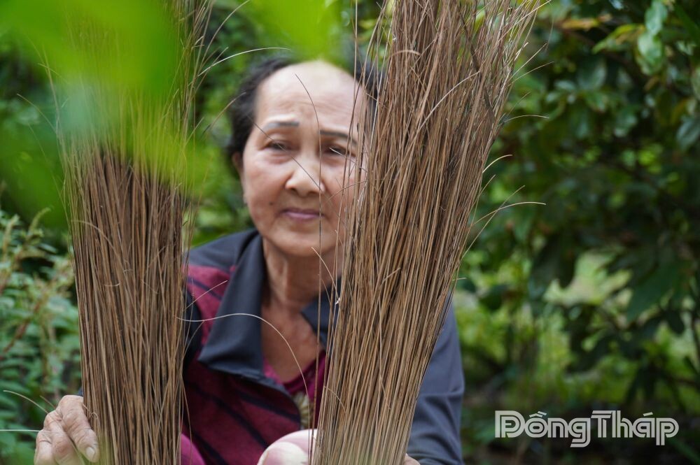 Thu nhập ít ỏi của bà ngoại Đạt ở quê nhà nhờ vào tiền công chuốt cọng que dừa thuê.