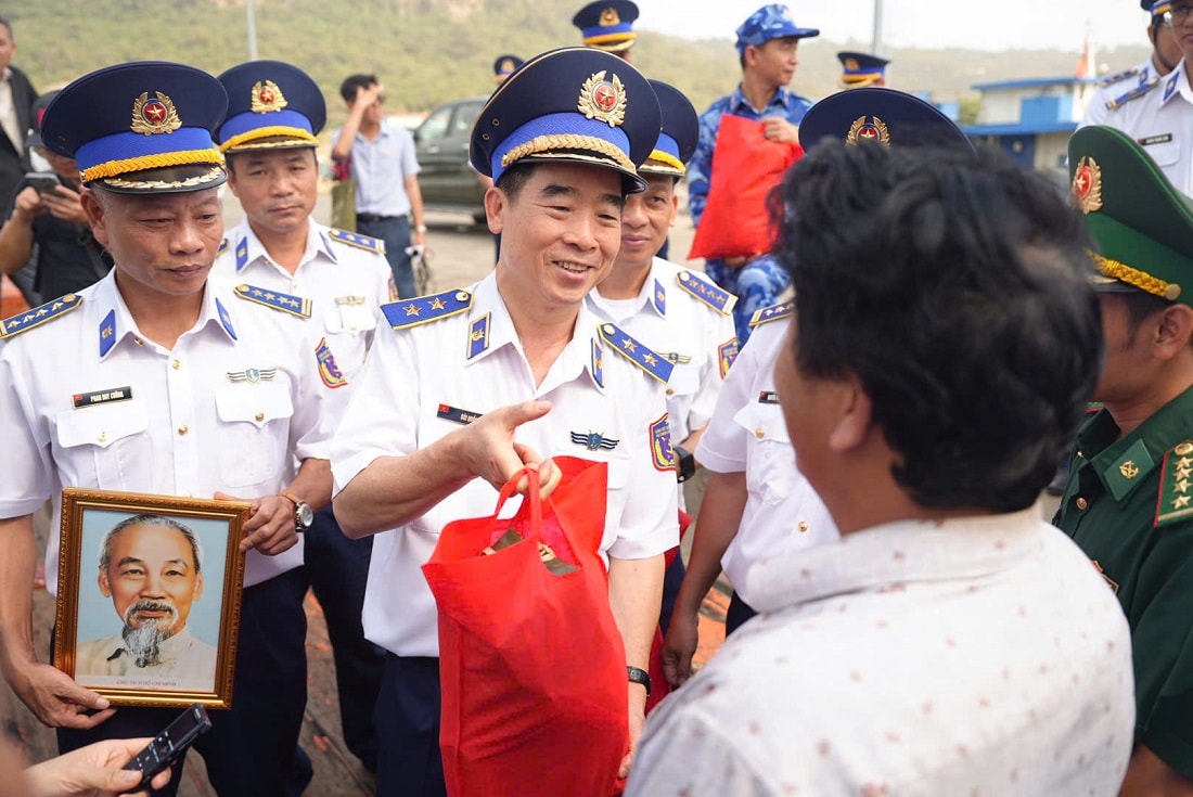 Tiếp đó, Đoàn công tác đã đến thăm, tặng quà và chúc Tết Đảng ủy, UBND đặc khu Thổ Châu; các cơ quan dân, chính, đảng; cán bộ, chiến sĩ các đơn vị lực lượng vũ trang và nhân dân trên đảo Thổ Châu. Trung tướng Bùi Quốc Oai khẳng định, Cảnh sát biển Việt Nam luôn quan tâm phối hợp chặt chẽ với cấp ủy, chính quyền địa phương và các lực lượng trên địa bàn trong thực hiện nhiệm vụ phát triển kinh tế - xã hội gắn với củng cố quốc phòng, an ninh, bảo vệ vững chắc chủ quyền biển, đảo.