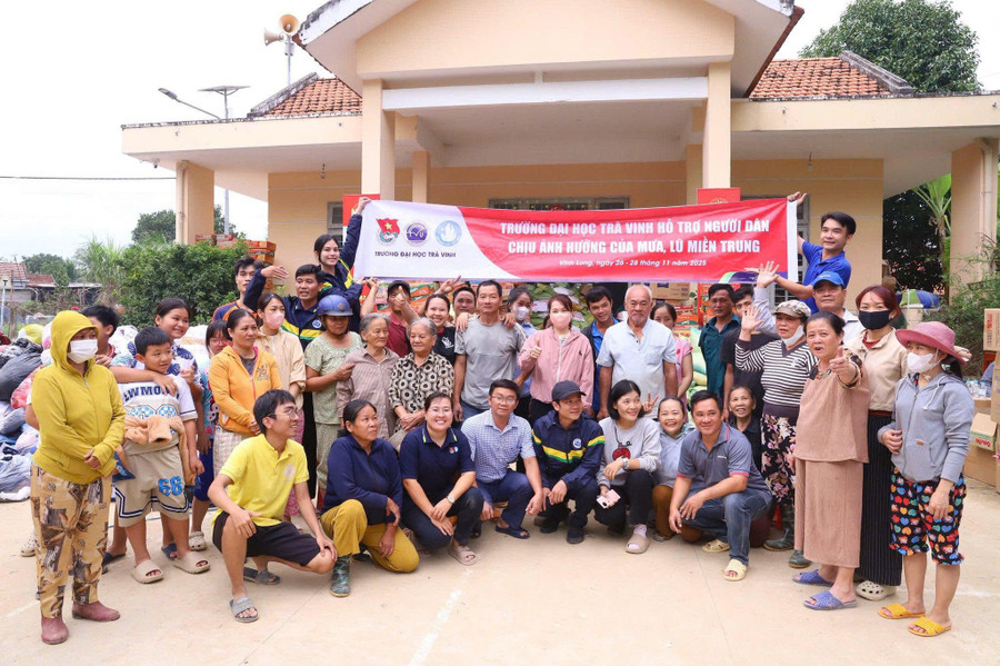 Ngày 27/11, một chuyến xe chở gần 30 tấn hàng hóa xuất phát từ Trường ĐH Trà Vinh đã vượt hàng trăm cây số, có mặt tại xã Diên Khánh, tỉnh Khánh Hòa, trao tận tay các phần quà cứu trợ cho người dân đang chịu ảnh hưởng bởi bão lũ.